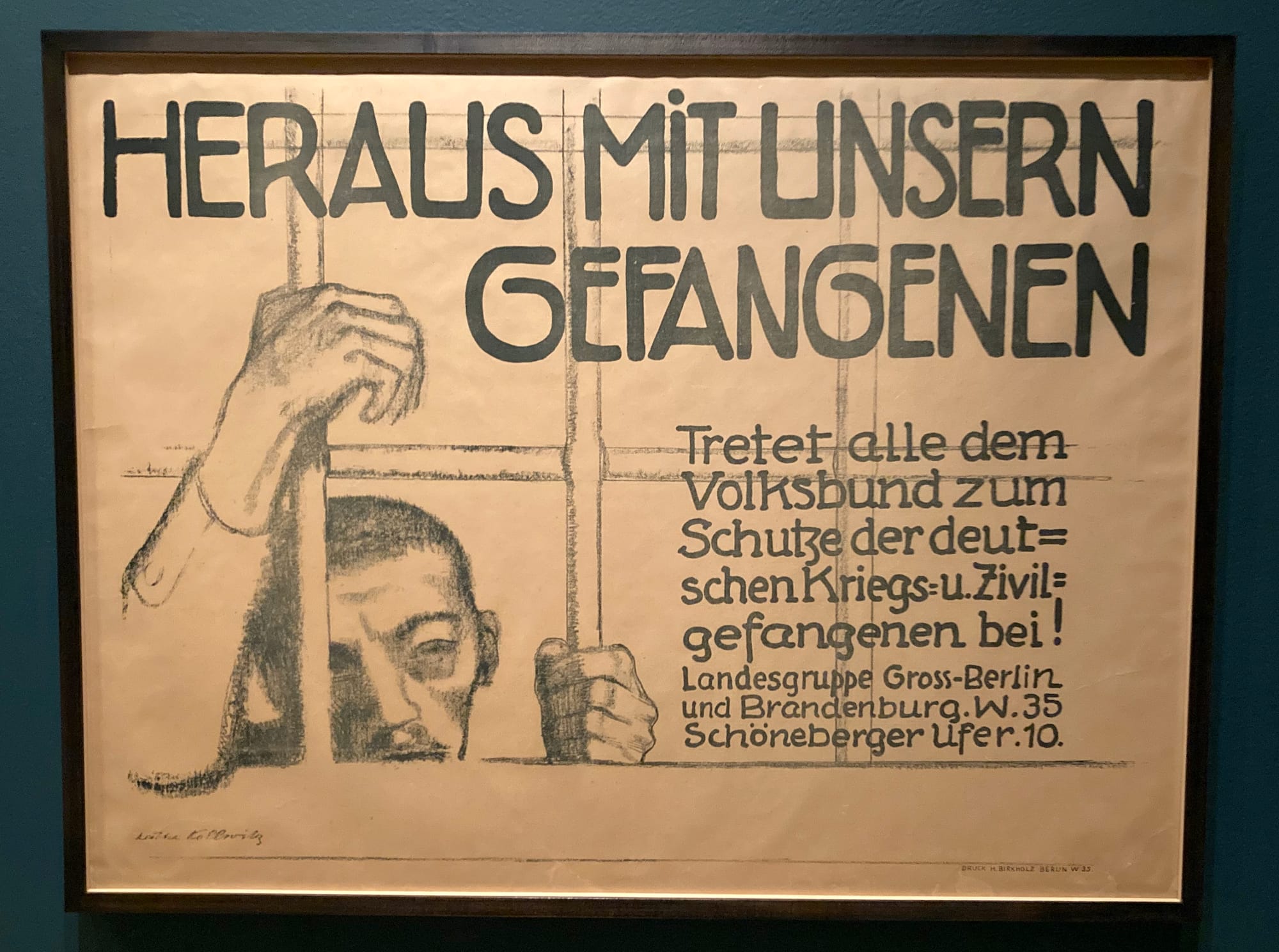 Eleven years later, Peter was killed in action in the First World War, aged 18; his death shattered her, and intensified her pacifist beliefs. The show’s final section includes Kollwitz’s political and humanitarian posters, a few beautifully intimate charcoal and crayon sketches of lovers that are drawn with the same sparse gestures as her images of grief, and her War print series (1918–22/23), begun just after the end of World War I. These works mark a transition from lithography and etching to woodcut printing.