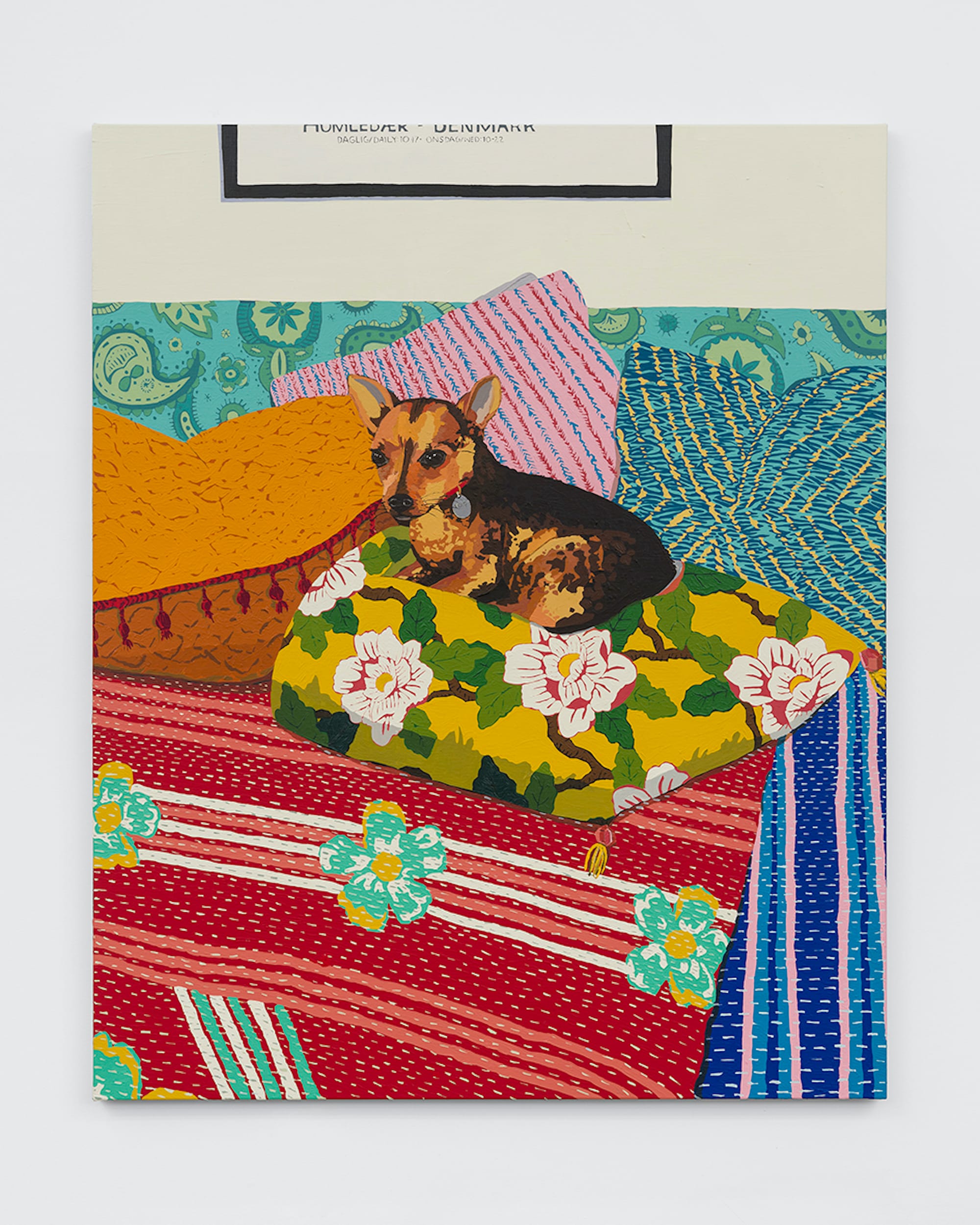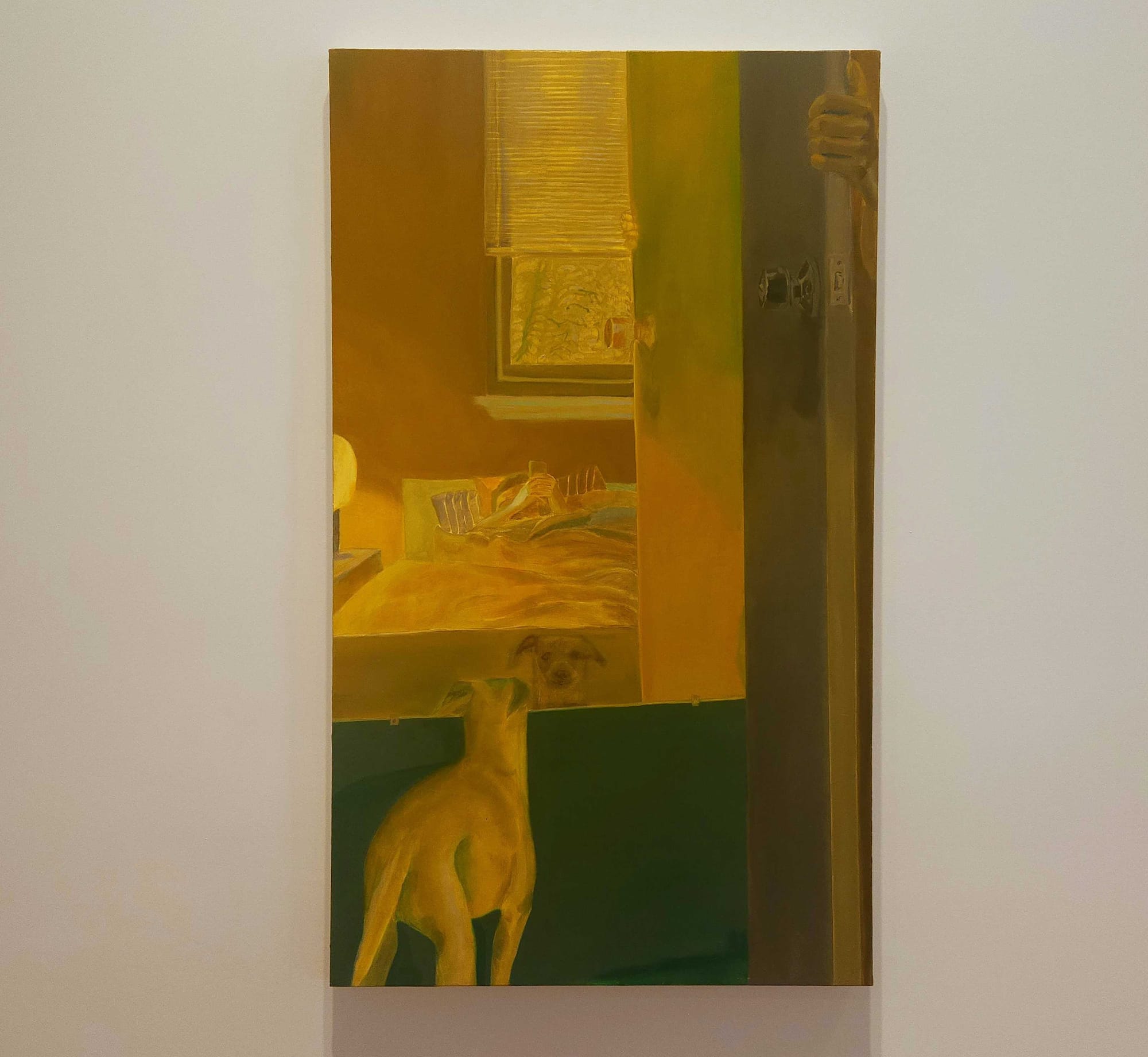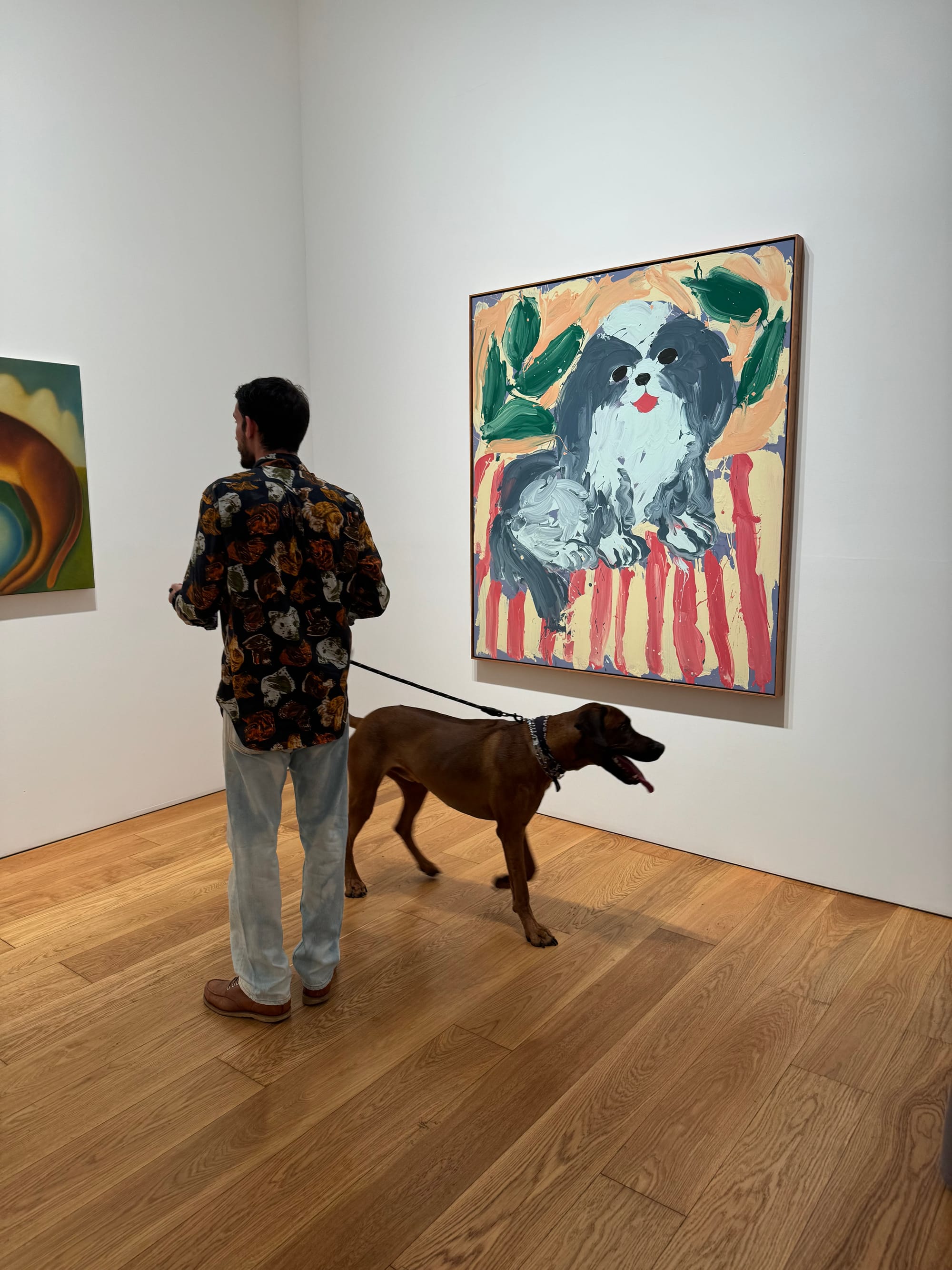 I was especially excited by Surman's "Demon Hunter" (2020), whose gray-and-white subject bore a striking resemblance to my late childhood dog Ralphie (who at most hunted for pieces of cheese on the floor), Justin Liam O'Brien's "Hungry Borzoi" (2024), and Robert Roest's three photorealistic paintings of a Chihuahua's tongue gone rogue.