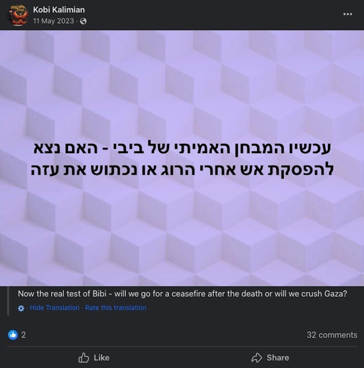 Kobi Kalimian's once-public Facebook post calling for the obliteration of Gaza after an Israeli civilian was killed by a rocket sent from the Palestinian Islamic Jihad.