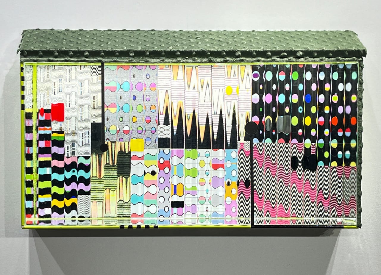 Using a commercial pattern glass from the 1930s and ‘40s known as Flutex, Sydney Cash creates vibrant contemporary wall sculptures that seem to dance. At the Woodstock Artists Association & Museum, he repositions this funky and fun glass product, once used in offices and showers to provide privacy, into nifty works simultaneously retro and contemporary. “Triumph” (1989–2024) is a three-part panel composed of Flutex glass, computer-generated drawing, lighting, a mirror, and fabric; a wavy strip above the assemblage makes it look like it’s grooving to its own structure. Other works such as “Rubic” (1983–2024) and “Slow Boat to China” (1982–2023) vibrate with harmonious, flowing forms, transforming these artworks into vehicles for meditative visual experiences.