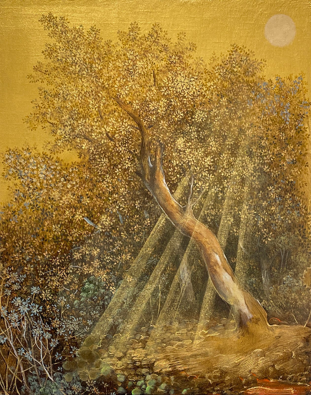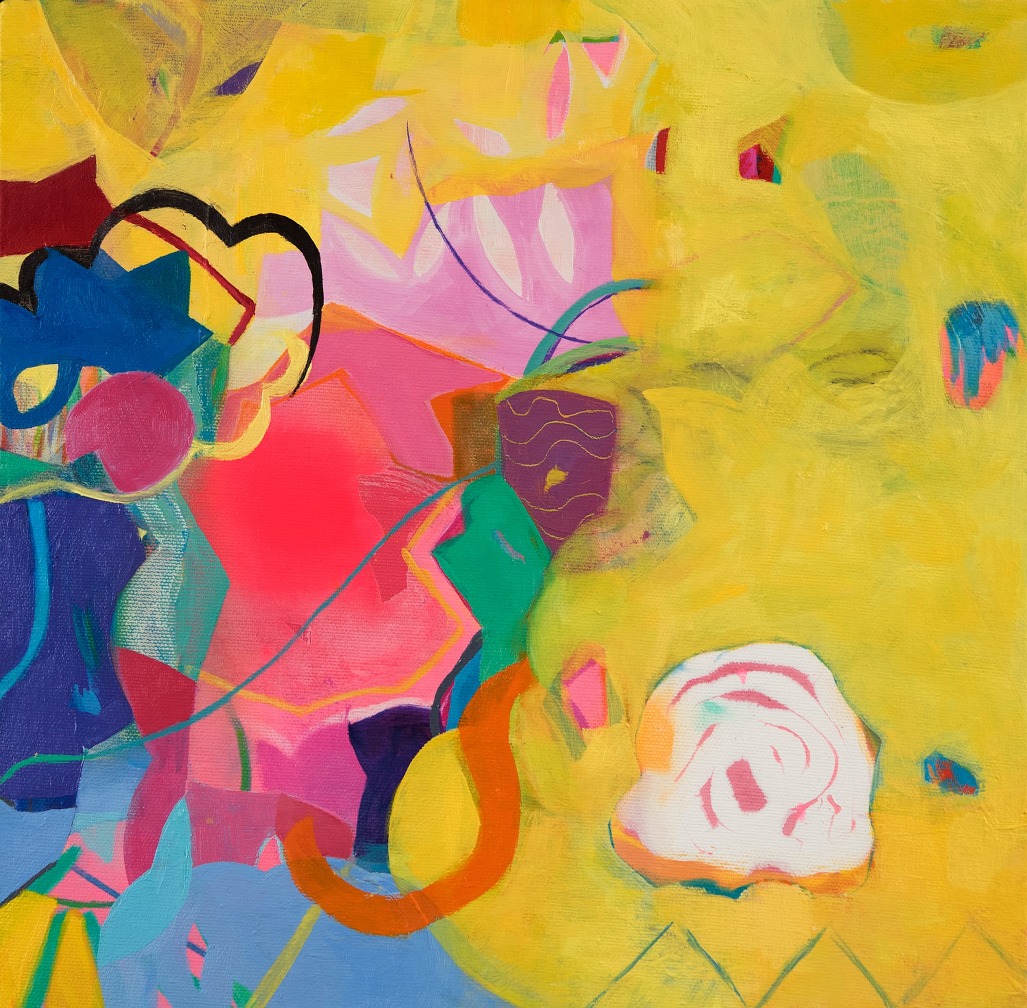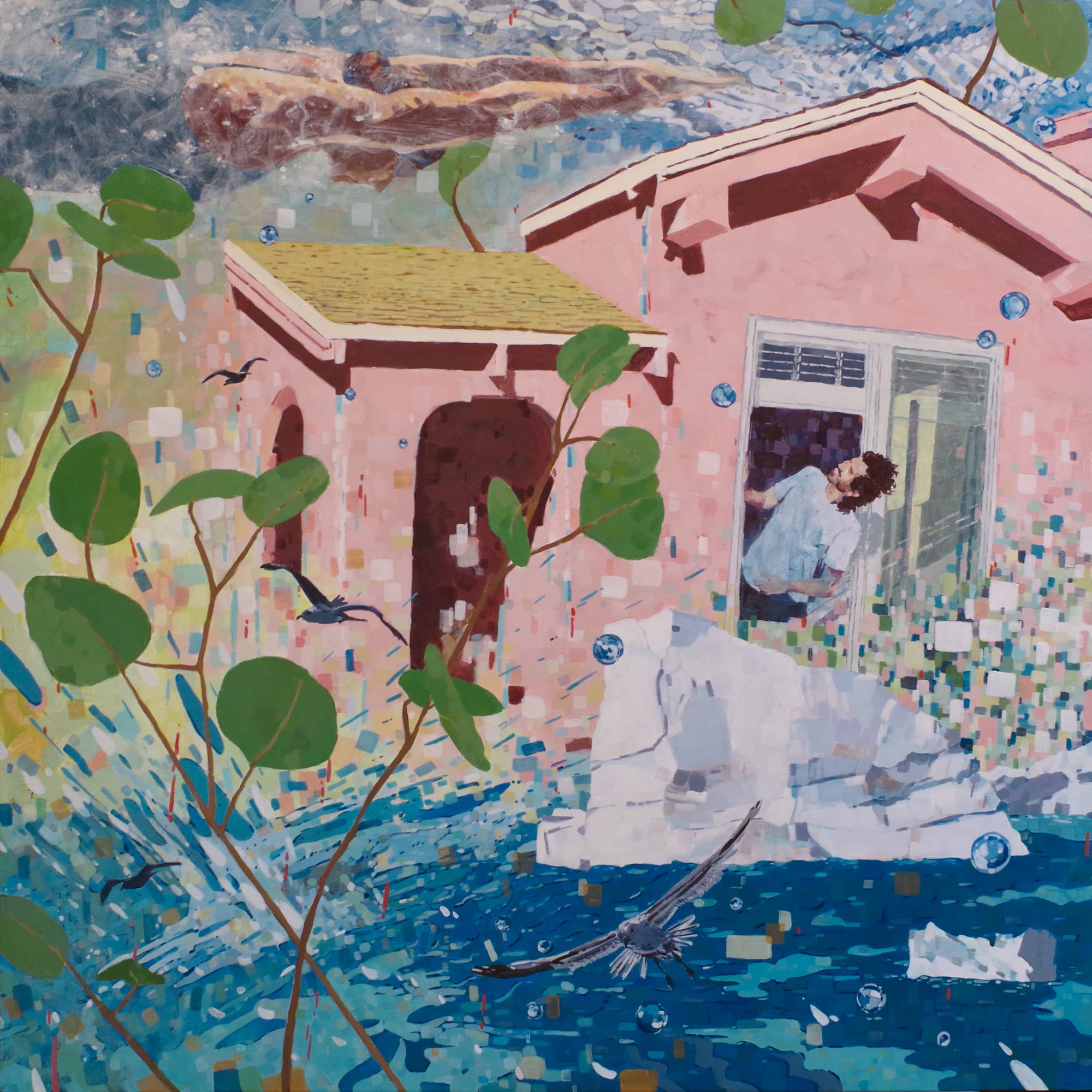Three women artists explore the compelling effects of layering in this visually affecting show. Alyce Gottesman draws inspiration from her rural upbringing on the East Coast and her exposure to the dramatics of light during her years living in California. Music, too, is essential to her work, as seen in improvisational works such as “Jazzy Splash” (2022) and “As The Spirit Moves You” (2021). Using print images as the basis for her paintings, Lotte Petricone experiments with the interplay between color and texture in a series of works that explore space, movement, and layering. “Swimming Through Skies” (2021) is a potent example: In it, a flummoxed man leans out his door to encounter a lady sailing gracefully above in a classic swimmer’s pose. And Mary Ann Strandell blends aesthetic tendencies from various historic periods in art, including Baroque, Modernism, and Post-Modernism.“Floating Worlds/Birds 1” (2019–20) is a delightful vision of sprightly winged creatures floating in a lush, lenticular landscape.