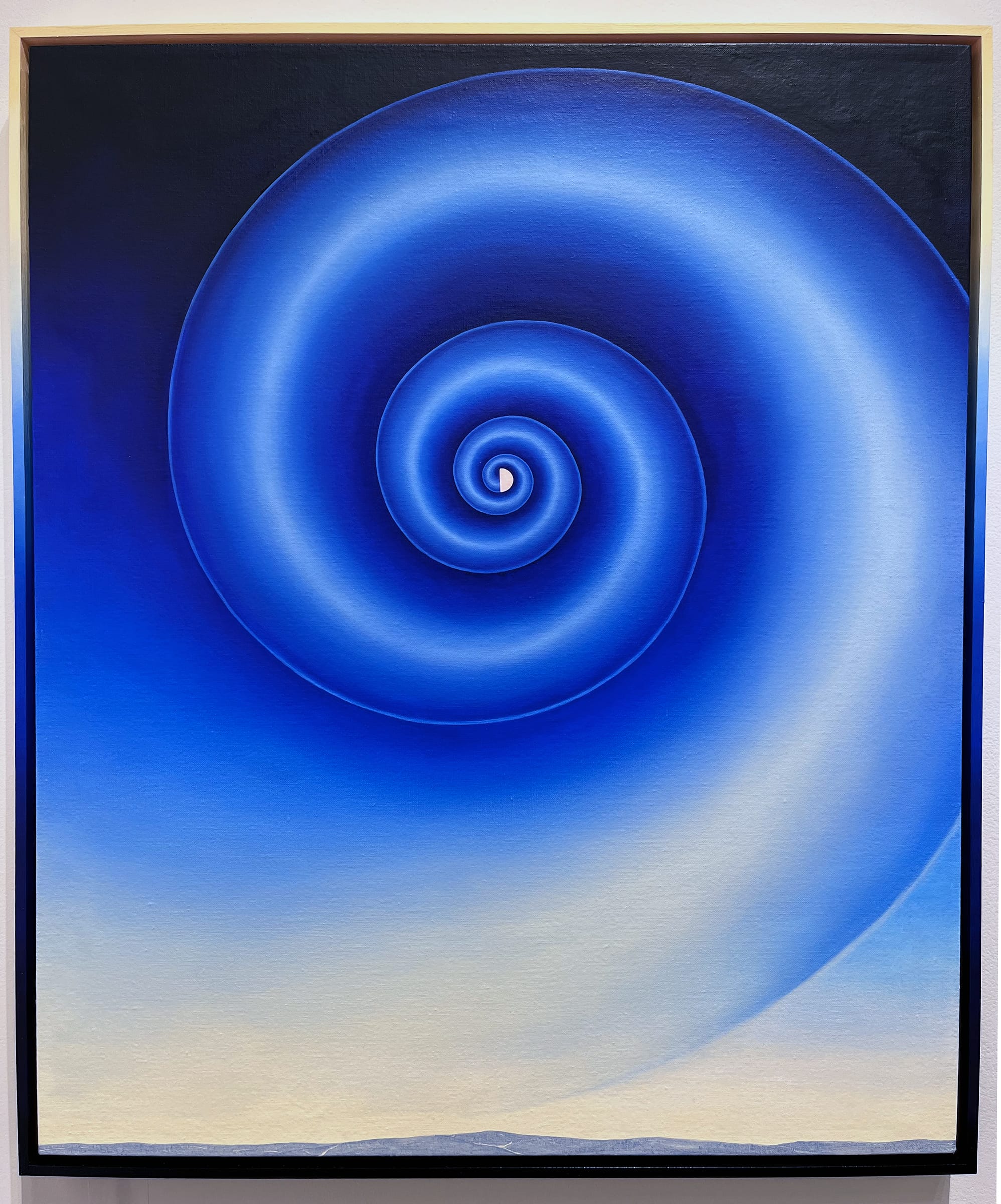 In a joint presentation by Elizabeth Leach Gallery and Cristin Tierney Gallery, Native artist Sara Siestreem learned the craft of basket weaving that her Oregon-based Hanis Coos tribe once practiced, creating several pieces using spruce root, red cedar bark, and sedge. The handwoven baskets can only be sold to institutions for educational purposes and not on the open market, so Siestreem 3D printed copies and made cast ceramic sculptures. All three varieties were exhibited at the fair, as well as several abstract panels of her work.