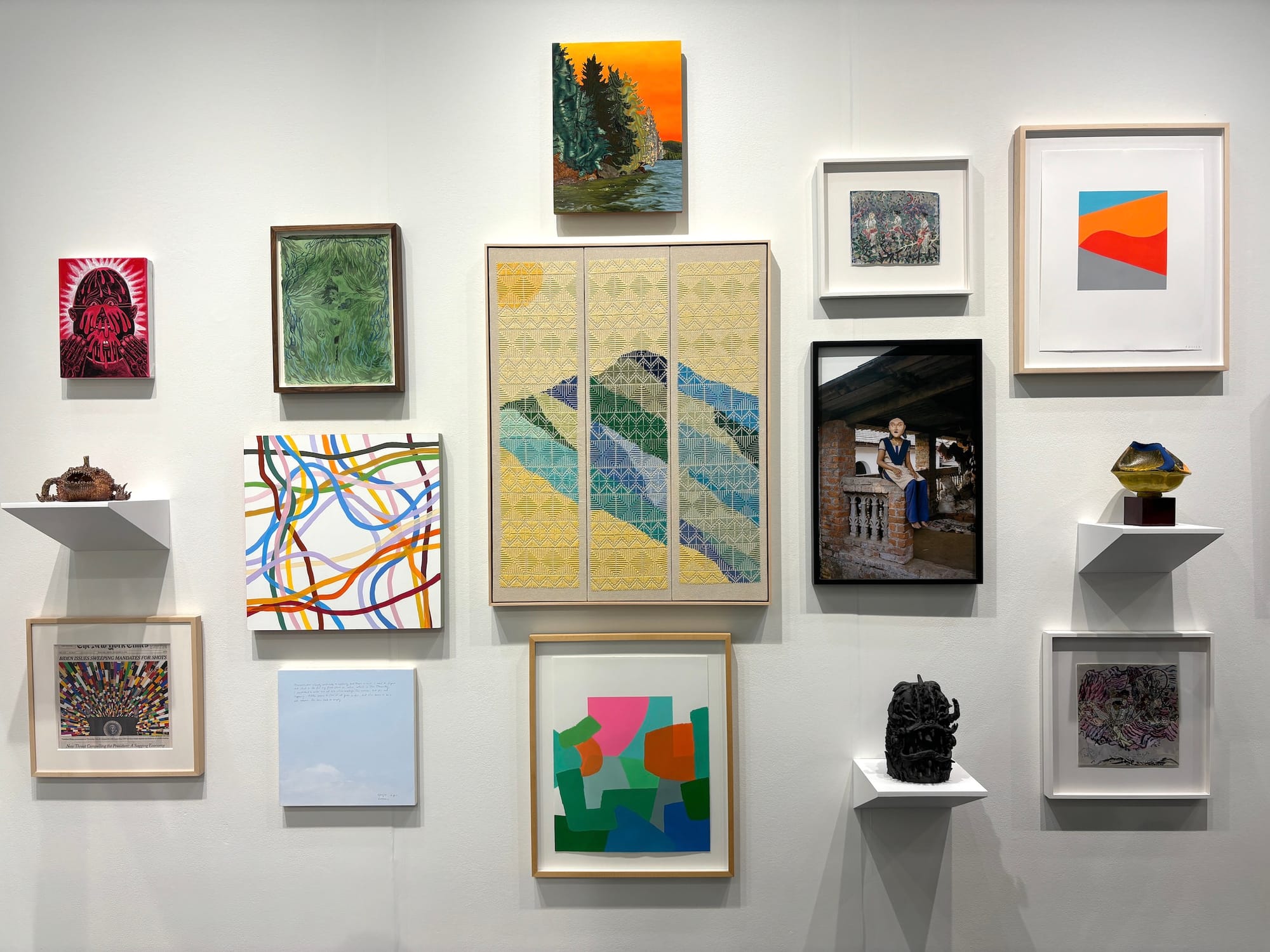 At Miles McEnery, lush colorful paintings by artists Emily Weiner and Gabrielle Garland, both of whom were new to the gallery, were gone on the first day. Weiner’s abstract works went for a range of $7,000 to $14,000 while Garland’s diptych of a modernist interior scene fetched between $30,000 and $35,000. Los Angeles’s Night Gallery sold four brand-new Sarah Miska paintings at a range of $16,000 to $48,000 as well as new works by Claire Tabouret, Sarah Awad, and Elaine Stocki between $10,000 and $30,000. At James Cohan, a pair of watercolor paintings by Naudline Pierre, whose work was also on view elsewhere, sold for about $12,000 each when the fair opened.