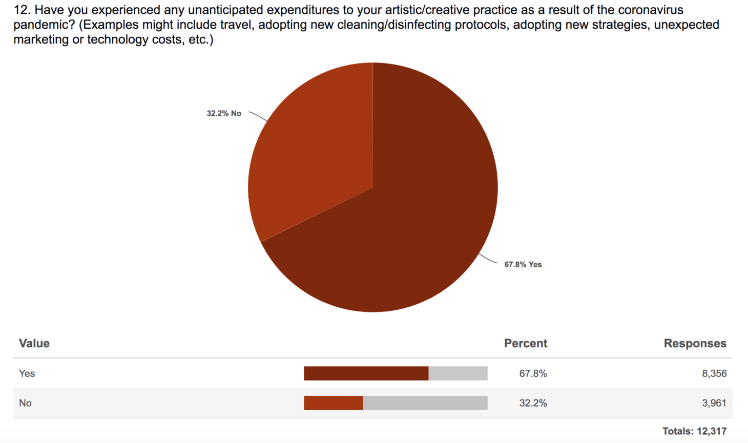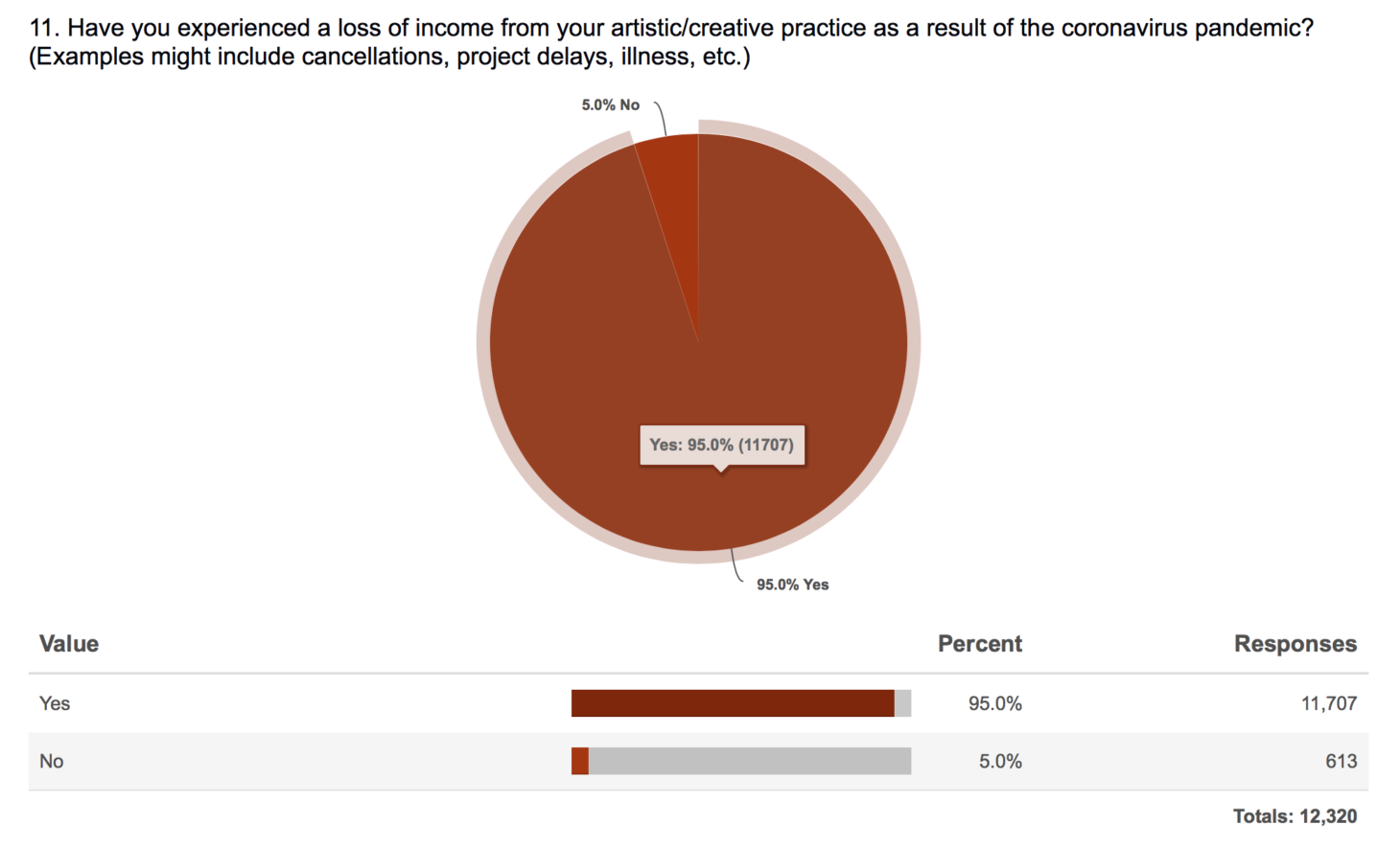 Over 11,000 artists responded to a survey by the organizations Americans for the Arts and Artist Relief.