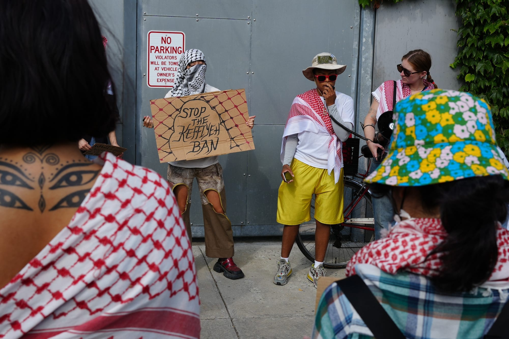 The Queens institution has come under mounting pressure from workers and community members in the last month after announcing a new policy that bans staff from wearing keffiyehs. Billed as a dress-code update that prohibits "political" statements to avoid "unintentional alienation of our diverse visitorship," the policy was immediately repudiated by employees, over 50 of whom signed an internal petition calling for its reversal. The petition text, reviewed by Hyperallergic, cited the keffiyeh's significance as a cultural garment and warned that the policy would "decrease the museum's credibility and tarnish its public image" if it became public.
