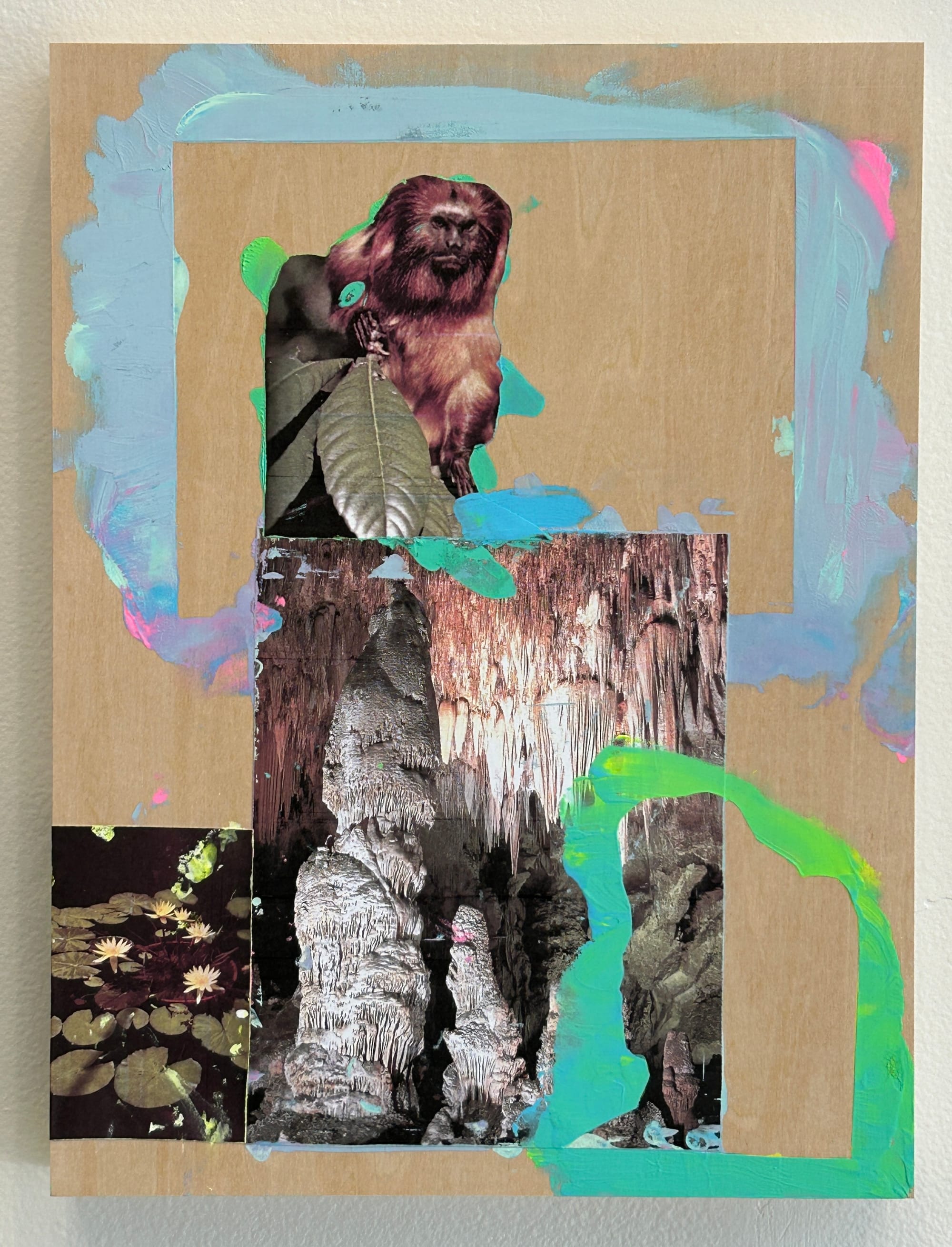 Artist power couple Ellen Letcher and Julie Torres — also curators and co-directors of LABspace in Hillsdale — celebrate their many years of creative synergy in the exhibition feeling uncomfy at the Foundation Gallery at Columbia-Greene Community College in Hudson. Letcher and Torres take turns and reflect each other’s sensibilities in paintings, installation, photography, and 3D works. Letcher’s strange and charming gouache and inkjet print on panel piece “Gertrude, Hildegard & Lilypad” (all works 2024) features an orangutan, lotus flowers, and a massive cave animated by bursts of blue and green. Torres’s works are smaller, playful, and more abstract expressionist. “licked," for instance, features a bold red mark against a white background, and the bright yellow border in “stickie” projects the same jubilant energy as Letcher’s work.
