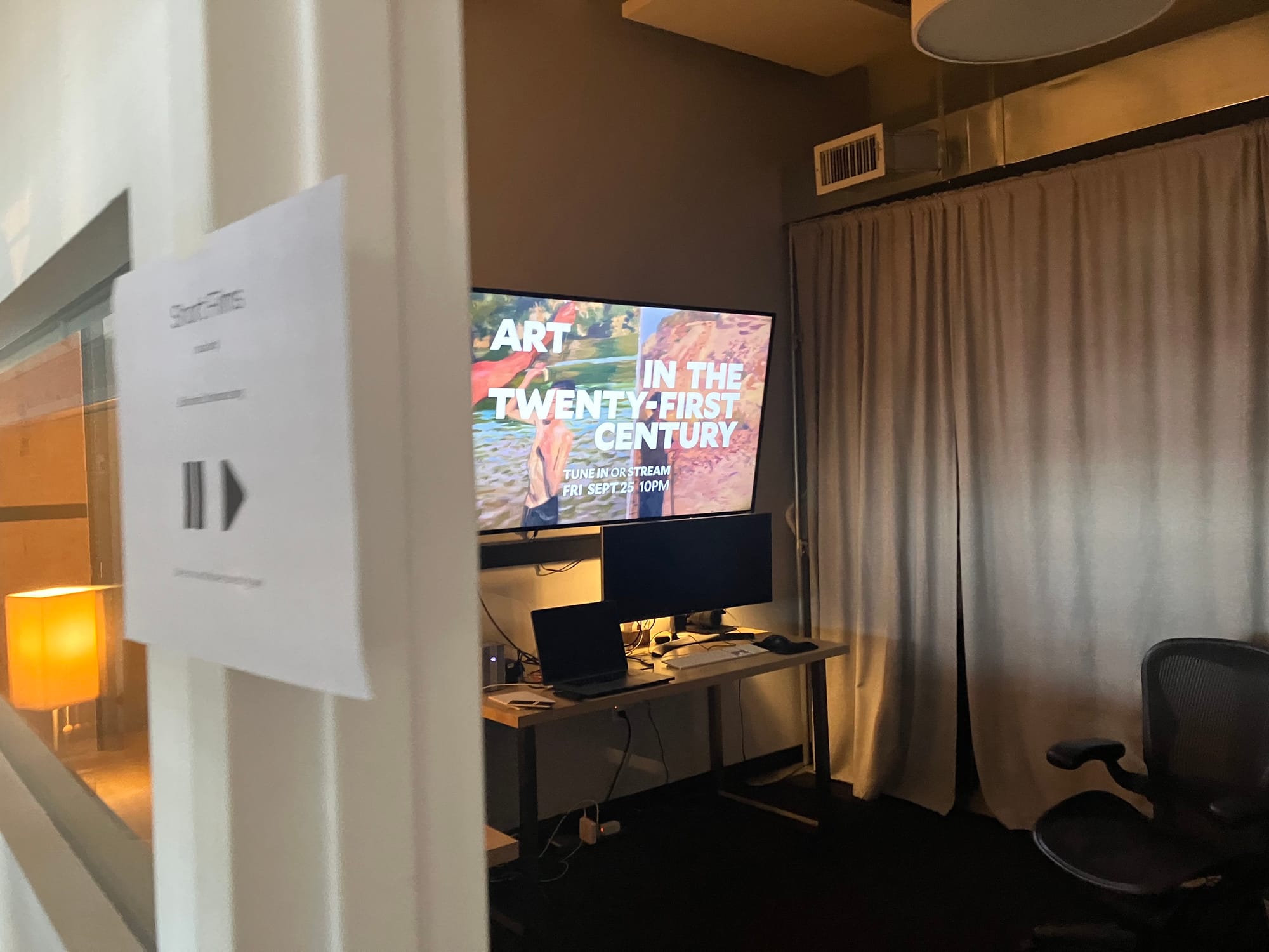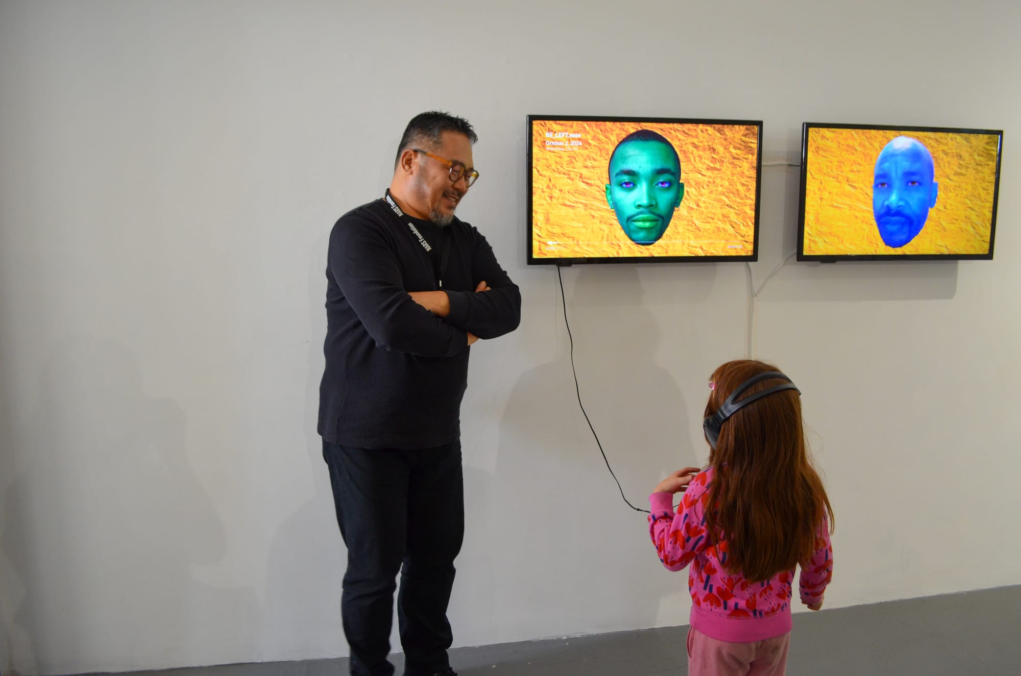 A decent walk away in the ArtBuilt studios, which provide affordable space for artists and creatives, Meerkat Media Collective opened its edit bays to the public and played short art films on a loop. A tenant since 2018, the film production company comprises around 20 team members whose work includes Emergent Cities (2024), which documents climate racism and gentrification in Sunset Park.