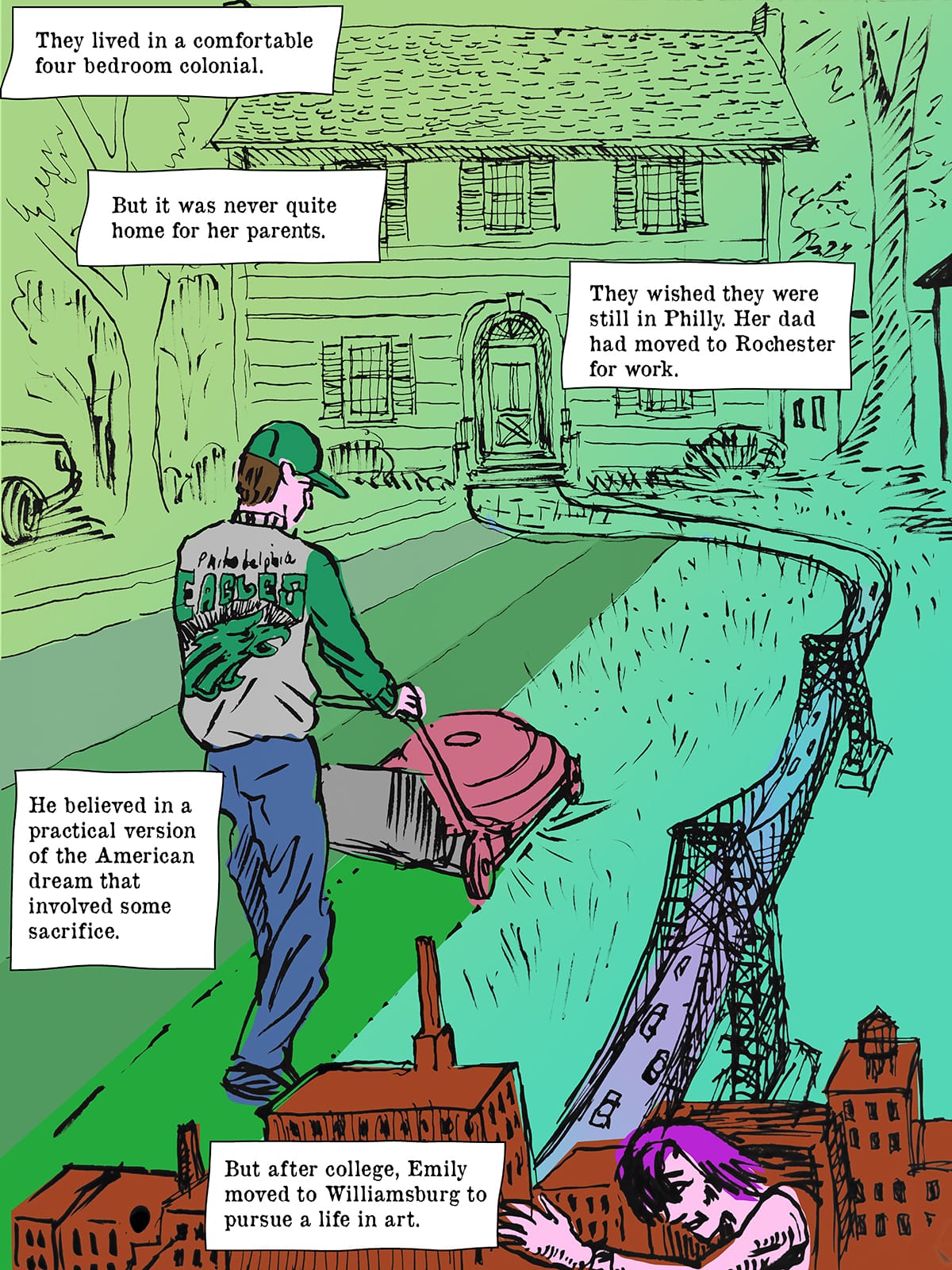This is the second of a series of comics depicting transformative moments in the lives of artists, activists, and organizers on the front lines of the housing affordability crisis in New York City