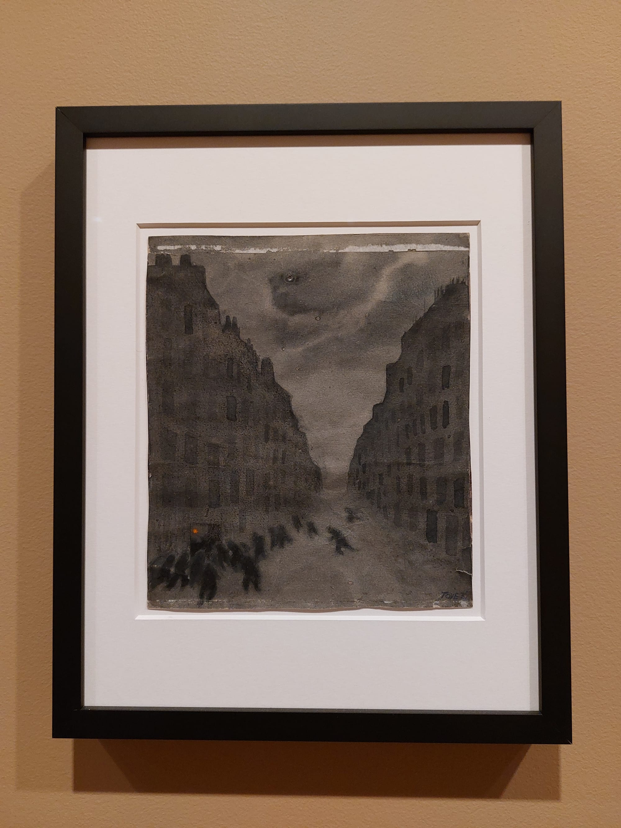 As an outspoken pacificist, Jansson spent the war years and beyond both protesting conflict and seeking an escape from it. Tove Jansson: Paradise at Helsinki Art Museum captures both aspects of Jansson’s life and work, with a focus on her public art commissions from the 1940s through ’50s. Most of her paintings avoid depicting the realities of war, but two tiny, tatty-edged works on paper speak volumes. Both are city scenes inspired by her travels in Germany in the late 1930s, during which she witnessed the terrifying rise of Nazism. One features a prominent swastika flag, while the other depicts a murky street surrounded by oppressive black buildings. A crowd of shadowy figures moves towards a tiny dot of orange light in an open doorway; are they refugees fleeing toward the hopeful glimmer, or are they fascists rushing to stamp it out?