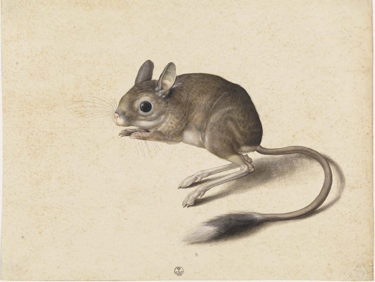 His interests weren’t limited to the ornithological. In his role as Francesco’s court scientific illustrator, Ligozzi accomplished the first genuinely accurate representations of flora and fauna in a continent on the verge of the Scientific Revolution. A black-eyed, hunch-backed marmot with slick gray fur and a toothy murine smile next to a branch of purple plums; a wide-eyed, finned grouper with pearly fangs, the fish’s scales a shimmering chartreuse and roseate; a petite desert jerboa with spindly legs and erect ears. Then there are his botanical obsessions, Ligozzi being among the most adept illustrators of the plant world — an unripe, crowned, pineapple; the pink flowers and heavy bulbs of the passion fruit; the stiff, spiny green tendrils of an American agave.