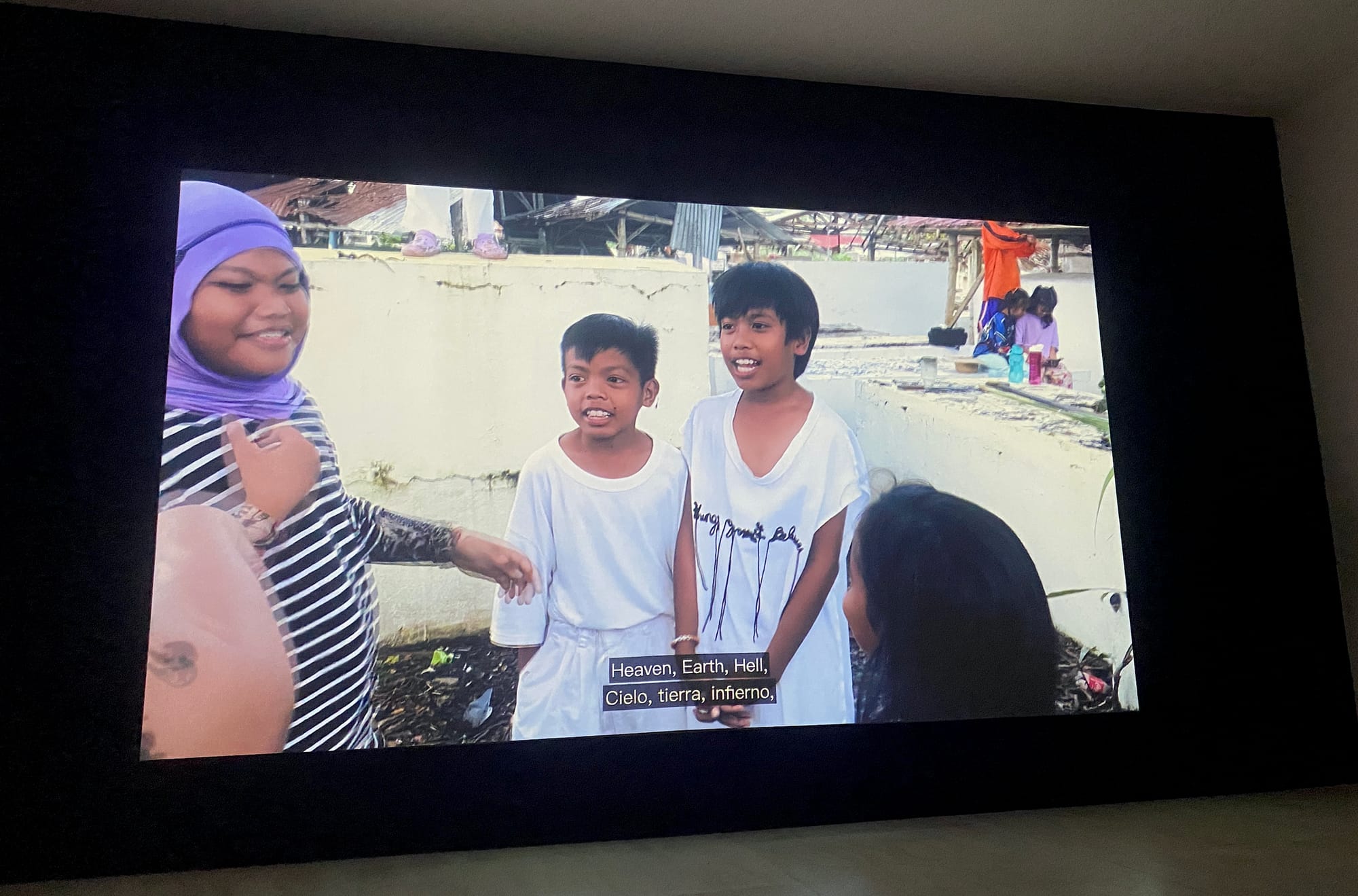 The Escalante Massacre serves as a touchstone for Offerings for Escalante, a show by Filipino artist Enzo Camacho, whose mother comes from Negros, and American artist Ami Lien at MoMA PS1. Langit Lupa (Heaven Earth) is a 56-minute film commissioned for the show, examining the massacre through the lens of memory and narrative. The title comes from a popular children’s game in the area, presented in the film somewhat like Ring Around the Rosie. “Heaven, Earth, Hell,” the kids recite as they stand in a circle, “Pierce through the heart, see the blood flow.” As they cycle through the lyrics, they point at other kids in the circle, and one becomes “it,” as in tag: “Dead, alive. Who will leave your mother’s place?”