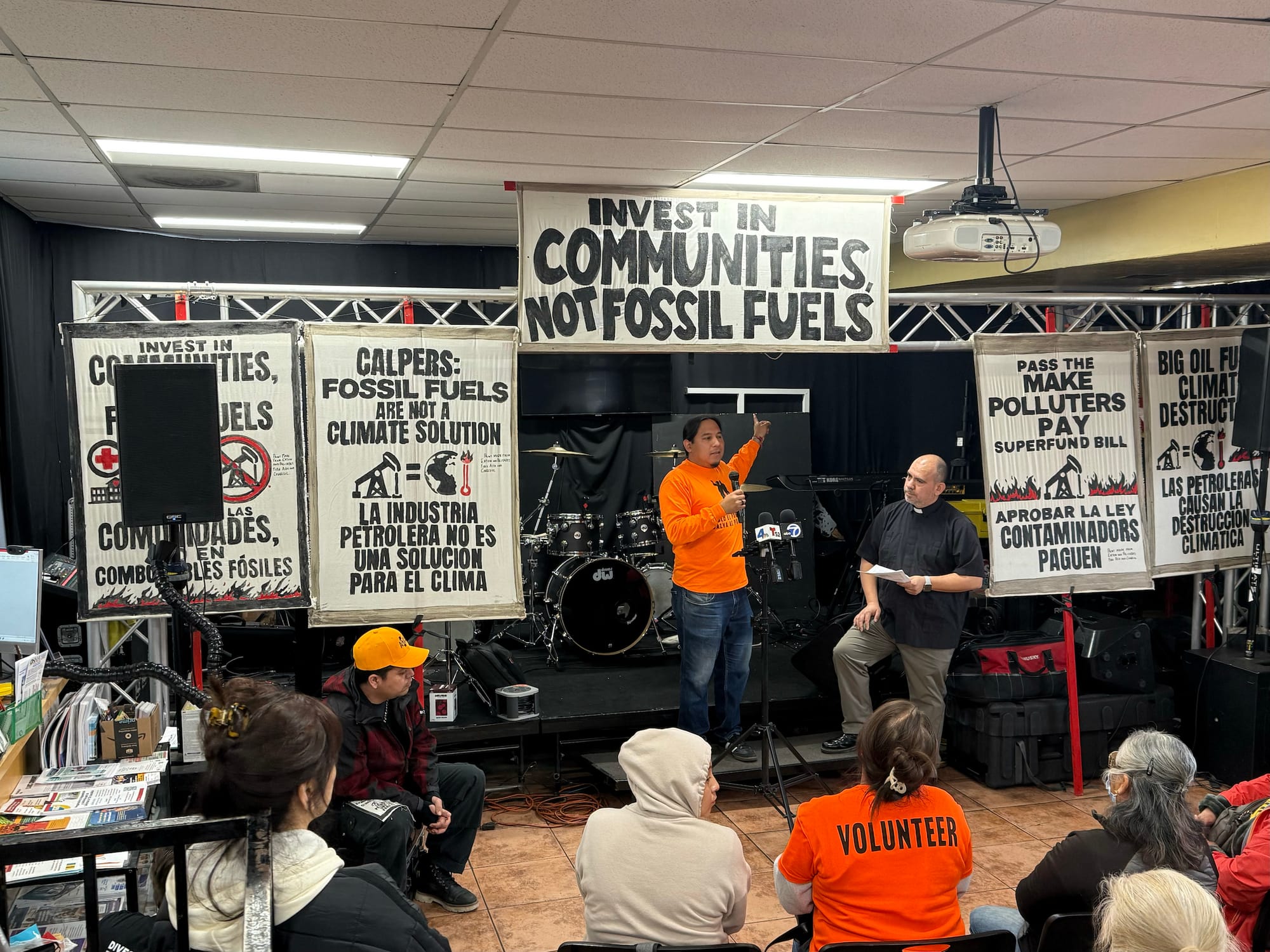 Organized by California Common Good, the event featured rousing speeches from organizers, union members, religious leaders, and local residents affected by the fires, who called on CalPERS, the nation's largest public pension fund, to fully divest from fossil fuels.