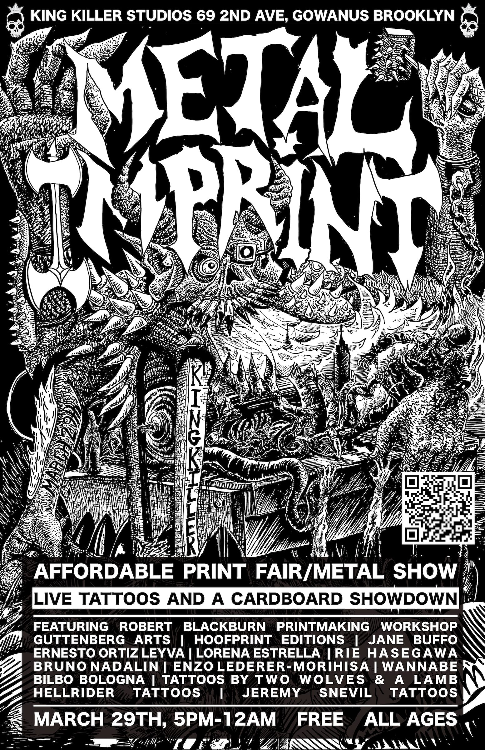 Co-organized by New Jersey arts organization Guttenberg Arts and the Robert Blackburn Printmaking Workshop, this event is part-art fair, part-metal concert, part-live tattoo sessions, and part-cardboard robot showdown. Free to enter and suitable for all ages, the art fair portion features 11 individual artists, print studios, and workshops that will be selling a slew of affordably priced prints. Those interested in the music programming can see details here for purchasing tickets online or at the door.