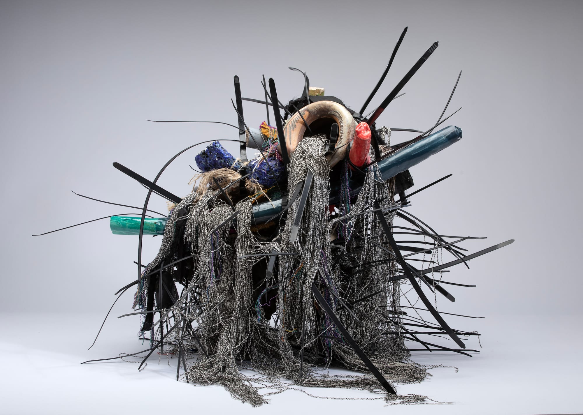 Ramekon O'Arwisters, "Bitten #8" (2022), ceramic shards, ber, zip ties, and beads (photo by David Schmitz, courtesy the artist and Patricia Sweetow Gallery)