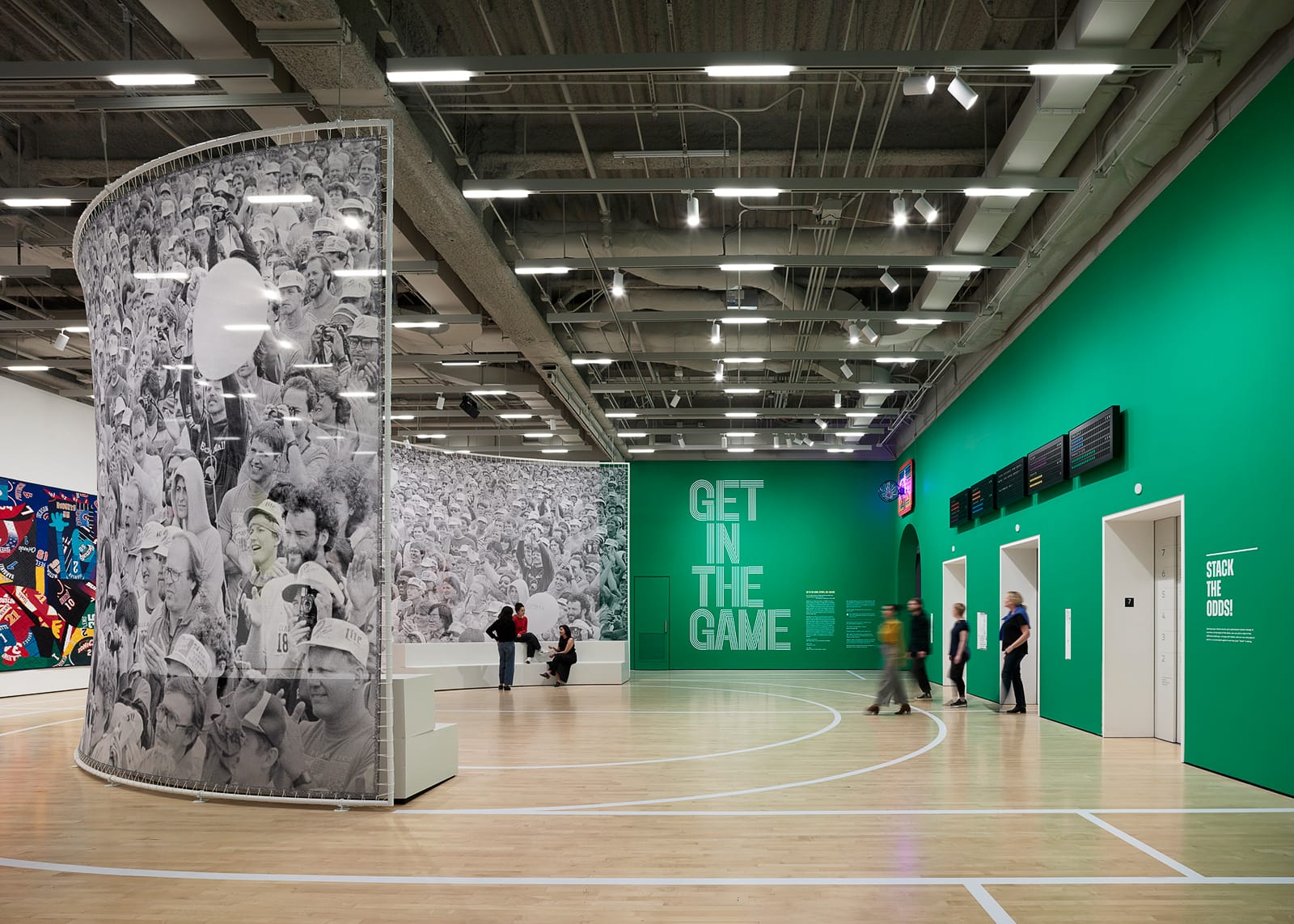 And also, we really thought about sound as a component. As soon as you get off the elevators, you hear the roar of the crowd, and it pulls you through the space. And we noticed that that actually just makes a much more casual environment. People were talking animatedly with each other, and then they discovered that they can actually try out a game. Even someone who had never played sports. And that came up a number of times, where someone was a bit hesitant to try out the tables, and then really got into it and got very competitive.