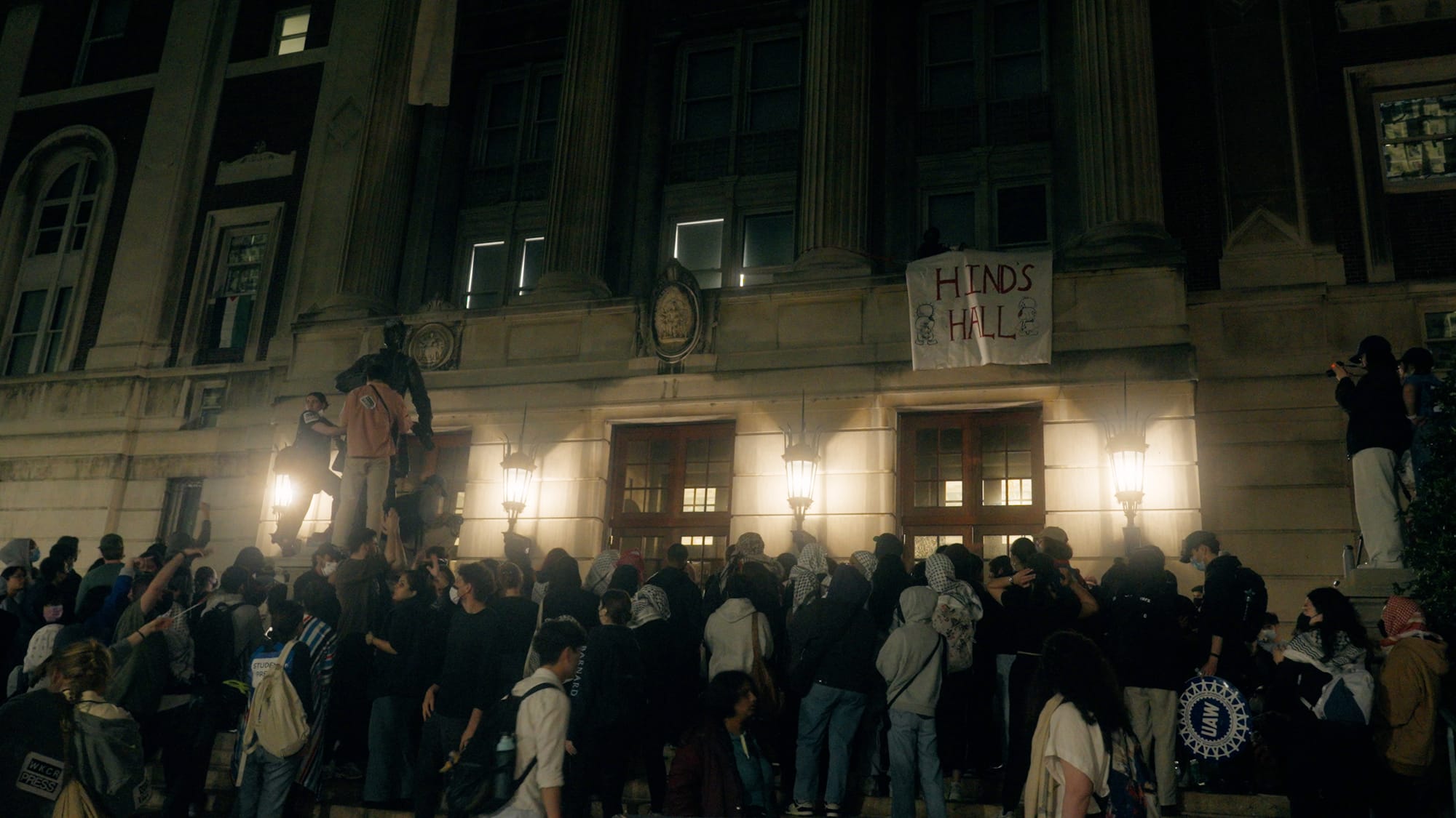 Throughout the documentary, Pritsker and Workman interpolate and subvert footage the overpowering mainstream and conservative media hysteria that characterized Columbia's Gaza Solidarity encampment for the rest of the world. They cover the encampment's lifespan through onsite recordings of students peacefully protesting, distributing donated supplies, and leading activism and history workshops on the campus lawns. The directors also weave in evidence of the police violence deployed during suppression tactics, sweeps, arrests, and ultimately, the armed raid on Hamilton Hall.