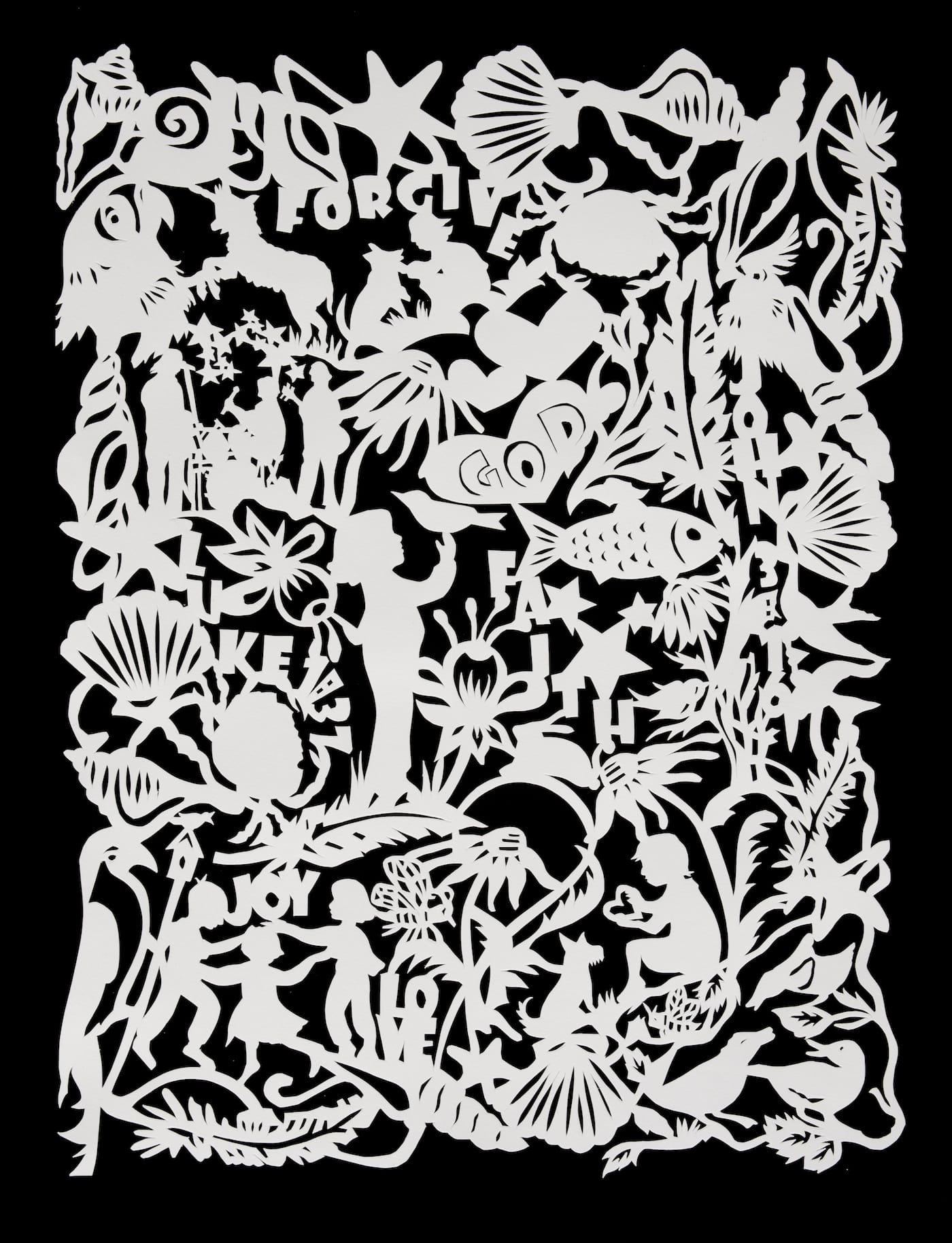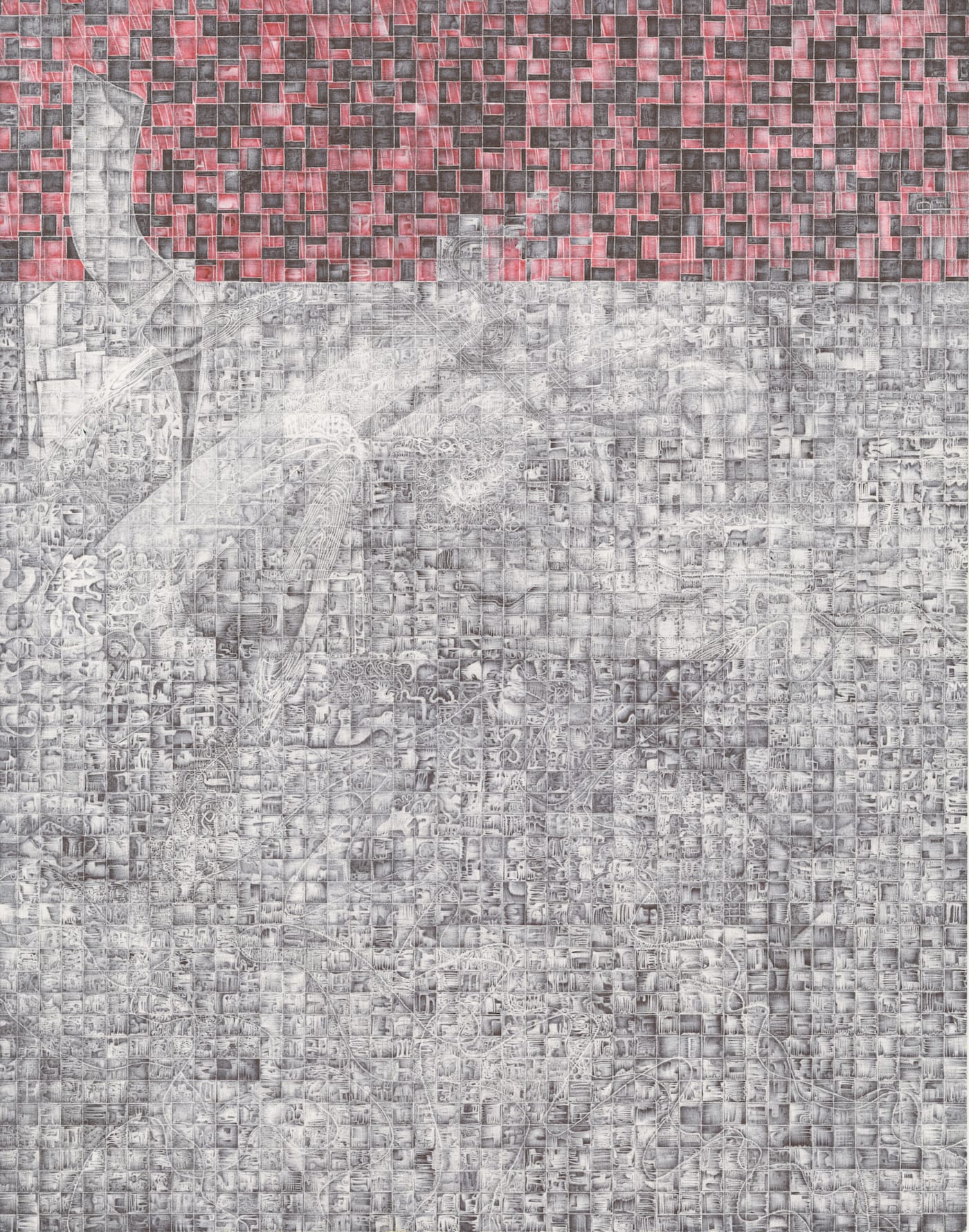 There’s also Veronica May Clark, who joined CPA’s Cheshire Correctional Institution workshop in 2013 as Nicholas, a young former professional skateboarder serving a life sentence. The first Connecticut inmate to undergo transgender hormone therapy, Clark slowly realized her gender identity through the work she did in art class. Incredibly complex and filled with thousands of microscopic markings that form a mosaic of smaller scenes, the drawing represents the great complexities of the artist’s life.