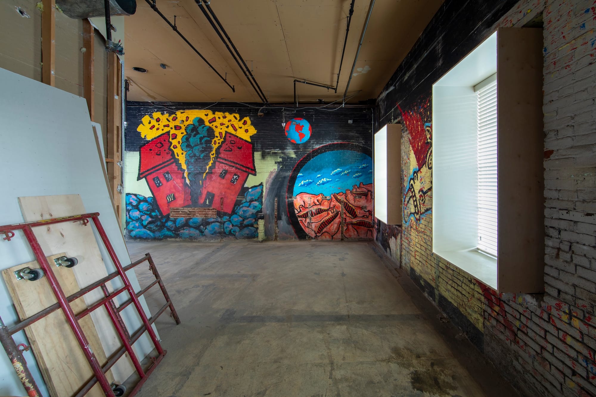 Other options were floated: encasing the mural in plexiglass, or installing a railing, and providing limited public access to the site for a few days a year. The Speed Museum, a few miles south, found a photographer to document the work and helped research contractors, Vitale said. During this period, she noted, Zyyo maintained contact and approved a site visit for a contractor plexi case assessment. But these were like "little crumbs," Vitale continued. "It was clear that they did not want the public coming in to view these murals.” Ultimately, the company decided to put the drywall back up, with a six-inch air gap so that the work is not flush with the wall — untouched, yet unseen.