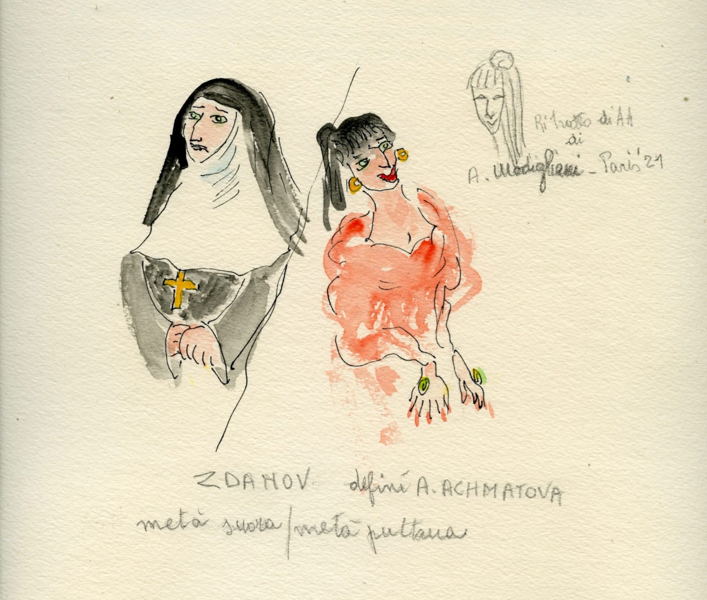 We see glimpses of this working process in Angela’s Diaries – Two Filmmakers, with images of the artists poring over books and seated at the bulky mechanical controls of the analytical camera. But what mostly emerges from the film is a sense of their intricately intertwined lives as both collaborators and cohabitors. The film’s title accurately reflects the complex nature of this partnership. While the film focuses primarily on Lucchi’s richly detailed journals, sketches, and watercolors — frequently read in halting, mournful phrases by Gianikian as he thumbs through the diaries’ pages — the film is just as much Yervant’s record of their life and work together, drawing upon what seems like incessant videography. Grainy, splotchy VHS images depict quiet, quotidian moments from their home studio in a remote corner Northeastern Italy, complete with chats with the neighbors, a bit of gardening, and glimpses of Angela’s awe-inspiring home cooking (including an off-the-cuff recipe for an exquisite-looking zabaglione).