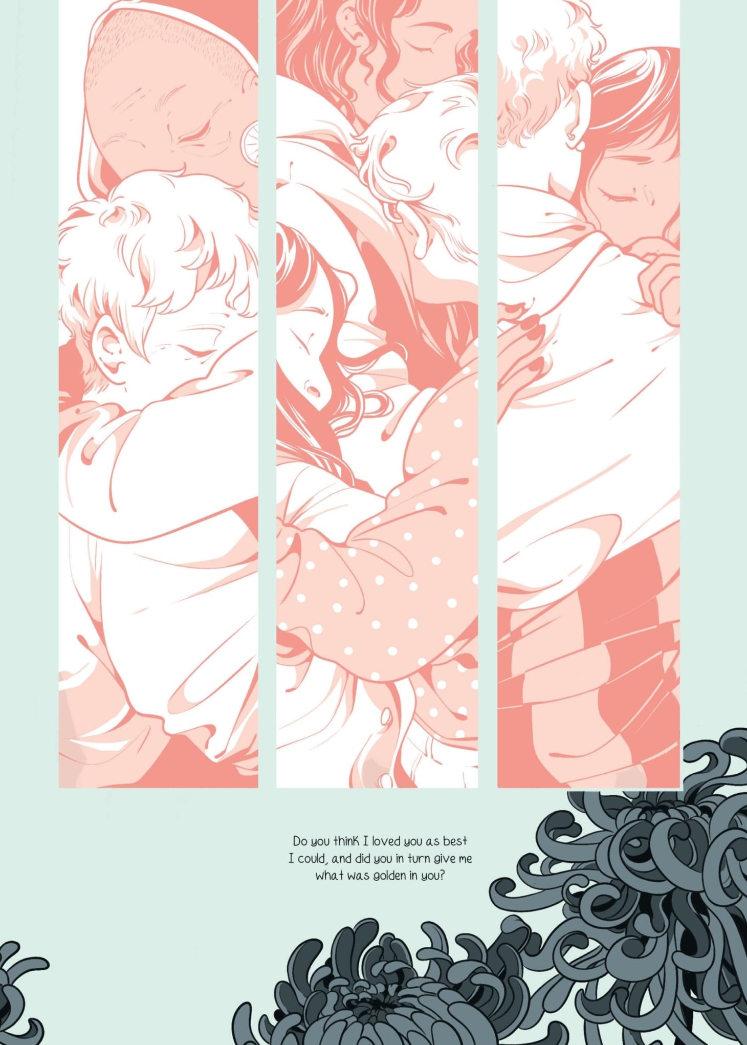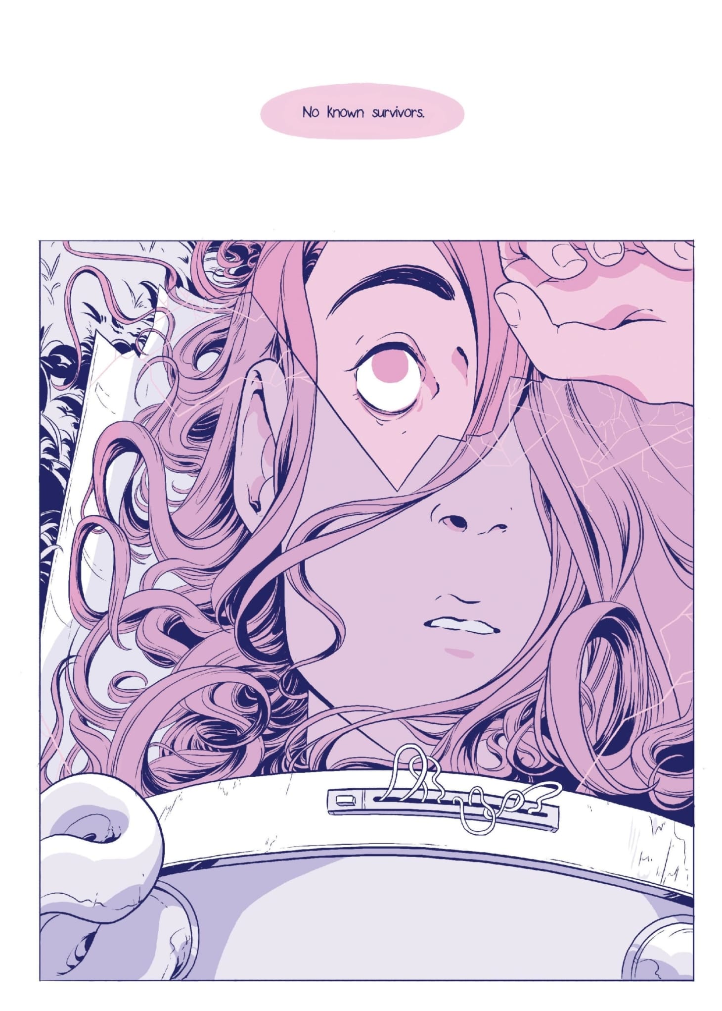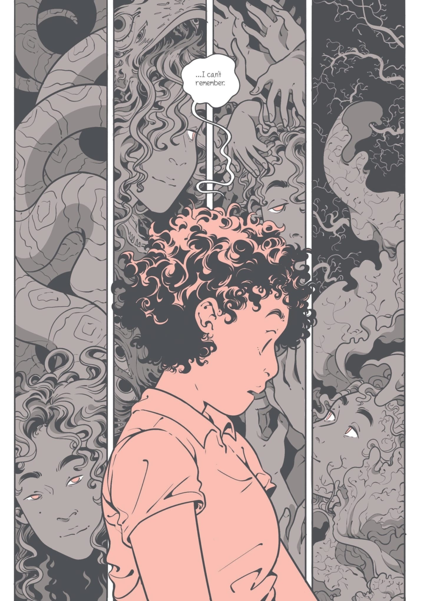 The softness of Valero-O’Connell’s aesthetic is integral to this effect. She forgoes sharp edges for curves, each page and panel containing a swirling cosmos where hair curls and seafoam become indistinguishable, and speech bubbles are the color and shape of smoke. Characters have rounded faces, feathered hair, and yearning eyes. Panels that are barely inches deep are precisely inserted, occasionally sitting atop a full-page image, mirroring the multifaceted complexity of love at the core of the book. The complete collection is definitively charming, as good romances are. It inspires a feeling of wistfulness, like a chaste kiss you can still feel on your lips. The ghost of it lingers, as well as the promise of another.