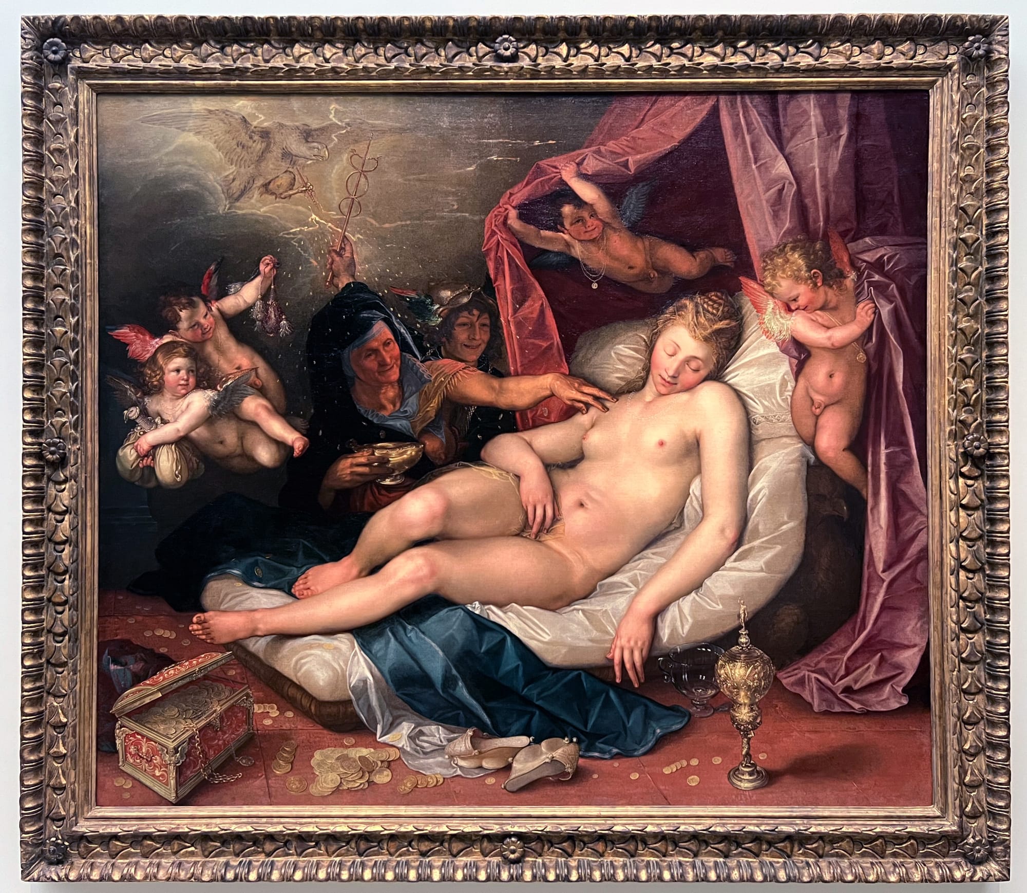This dramatic painting — Louis Finson’s “The Four Elements” (1611) — is featured in Metamorphoses, an exhibition at Rijksmuseum named after Ovid’s eponymous poem of myths. Billed as a blockbuster event combining Renaissance-era masterpieces with art from antiquity and more contemporary works, it uses the poem as a point of departure to track how artists across time have imagined Ovidian myths of creation, violent desire, and becoming. Without its digestible curation and programmatic approach, Metamorphoses could easily have been a substanceless excuse to put artists like Antonio da Correggio and Isamu Noguchi in the same room. Instead, its curators grouped paintings, sculptures, photographs, video works, textiles, metalwork, and ceramics according to the myth they depict. Plenty of these artworks are breathtaking in their own right, but it is in their juxtaposition that the show explores ideas of transformation, desire, and gender. The exhibition is a feast for the eyes, and not just empty calories — though the museum does hedge when it comes to our contemporary moment, proposing a “neutral” politics that shields the institution from backlash over potentially controversial discourse surrounding sexual violence, queerness, and intersex identity.