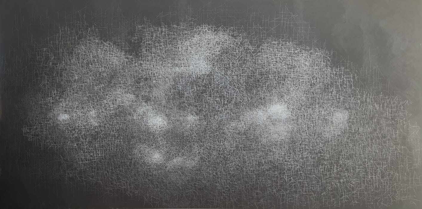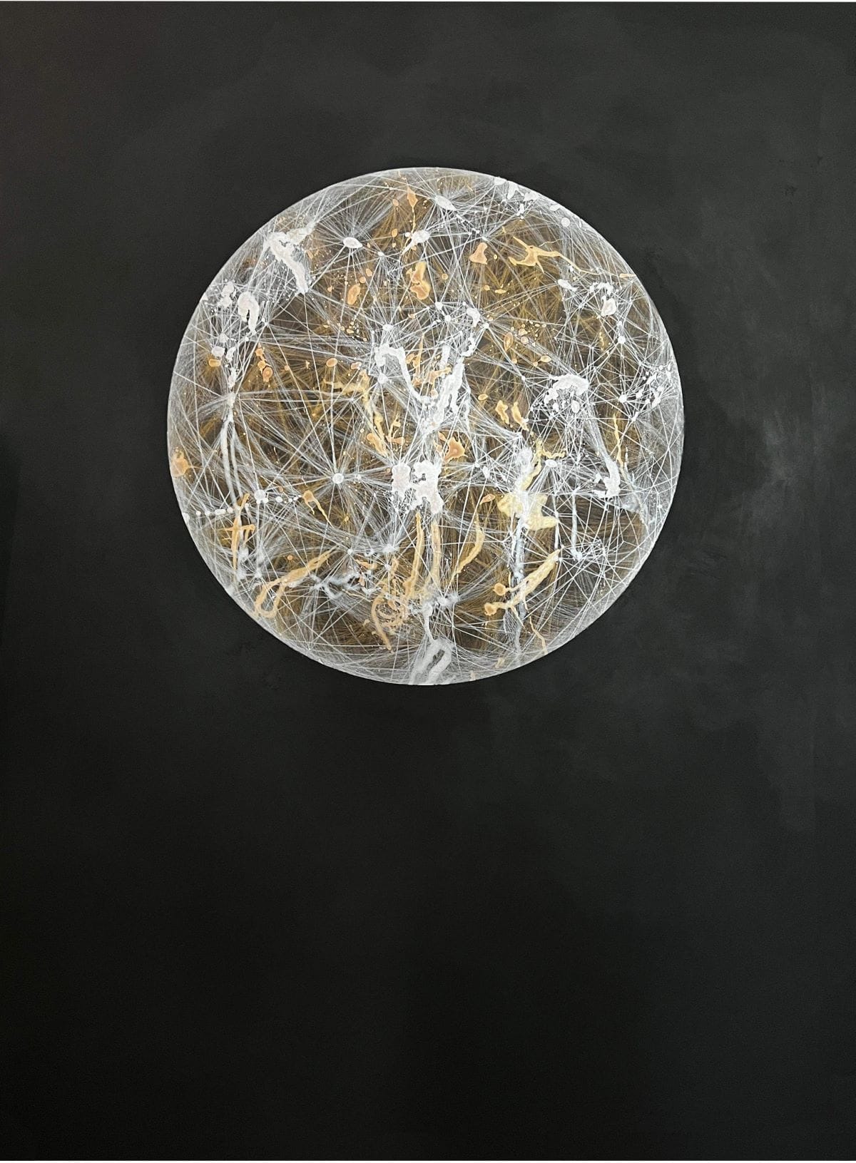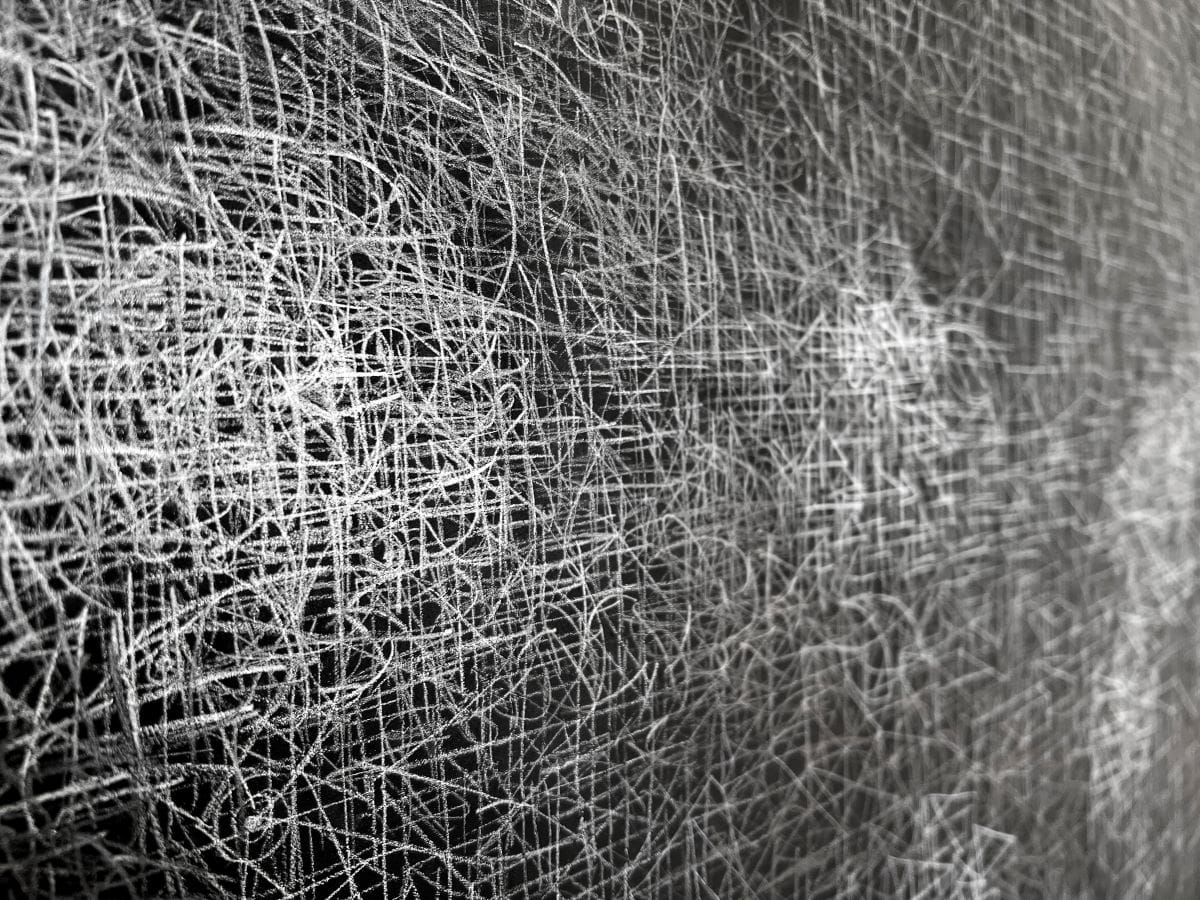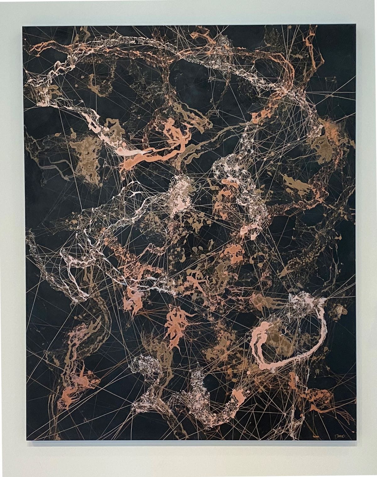 Sound and vibration have been at the forefront of Cassano’s art practice for about three years. Whether using sound equipment to make the vibrations that transform her noema into painting tools, or assembling hanging installations of noēma that create “infinite arrangements of pitches, tones, and resonance” when touched, she’s essentially working to make sound visible.
