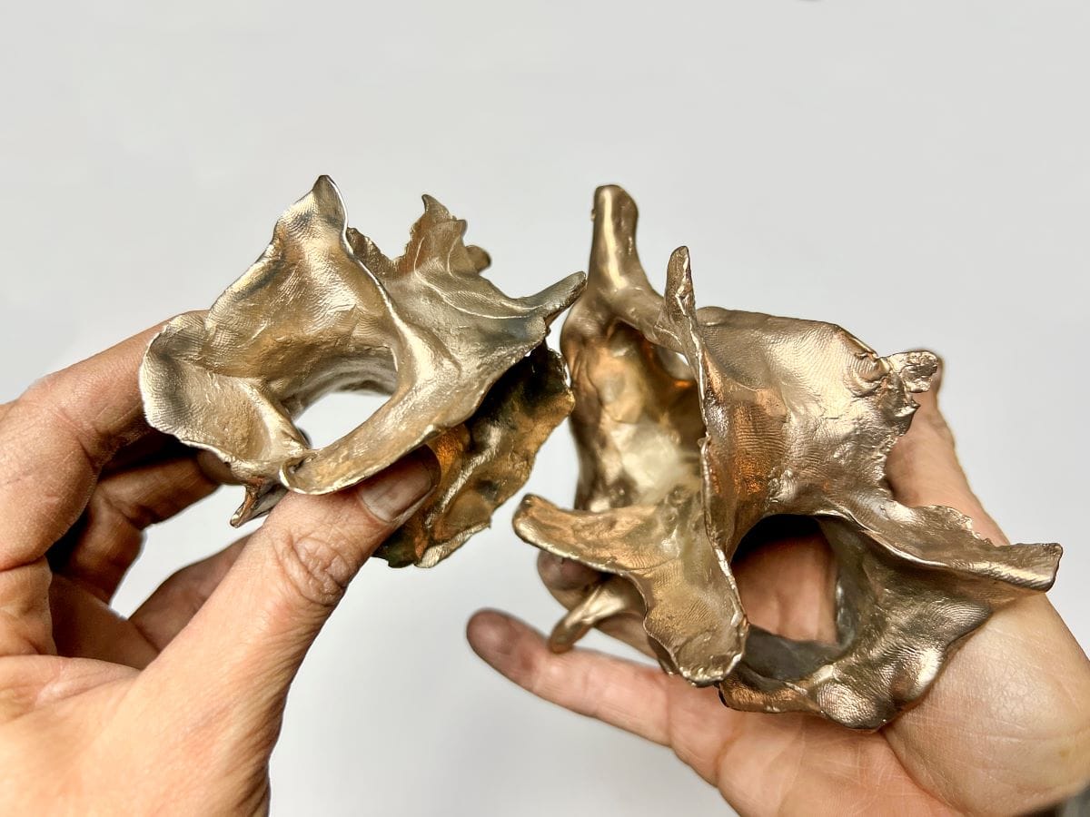 Recently, Cassano has been making bronze noēma for an installation that will hang suspended inside an atrium at form & concept during its upcoming Arrivals exhibition, as well as large-scale paintings created by dipping the forms in paint, then setting them atop surfaces where they oscillate and make marks in response to vibrations.