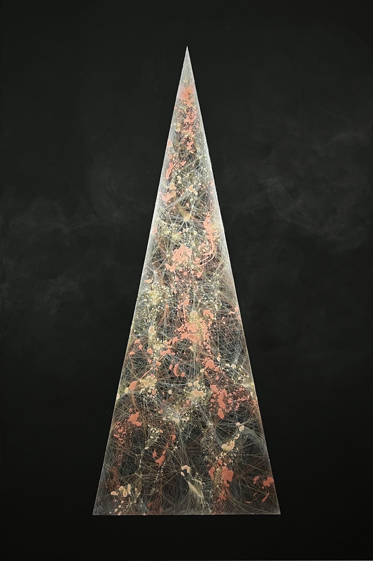 Cassano describes hearing sound as an intensely visible experience that occurs within her mind’s eye. “For me, sound produces intricate, geometric, morphogenic, three-dimensional forms that move through mental space and move in real time,” she said. “The frequency, resonance, pitch, and tempo all immediately affect the shape and movement of the form.” She doesn’t directly transfer the forms into specific works, but says they impact her creative process.