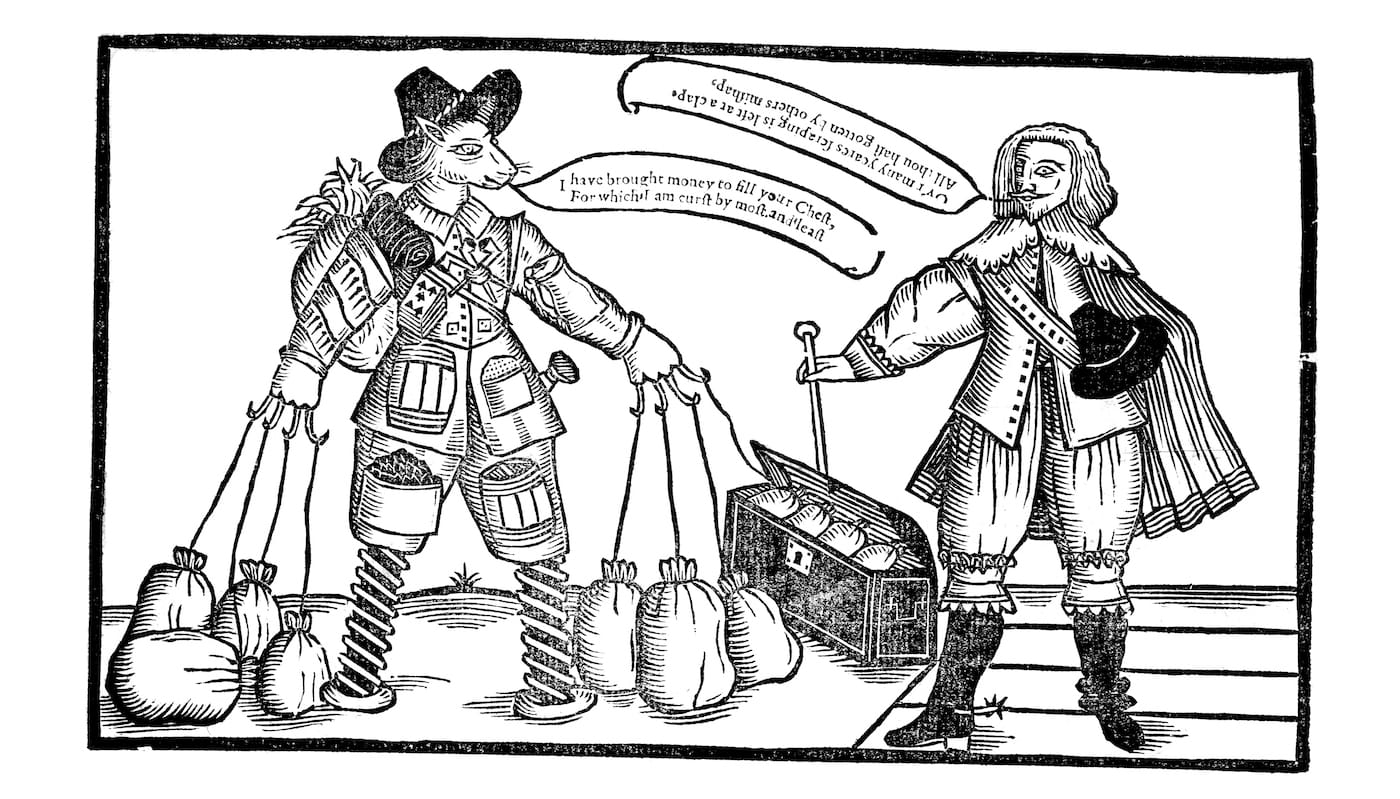 An anthropomorphic wolf carrying bags of money, sporting fish hooks for fingers and legs reminiscent of thick screws is perhaps one of the most bizarre woodcuts to emerge in the 17th century. A satirical image reflecting on monopolies of goods like wine and tobacco, it is certainly one that makes you pause and stare when flipping through Graven Images, a delightful survey of centuries-old woodcuts recently published by the British Library. The curious work from 1641 is reprinted in the 176-page book alongside many other examples of the graphic art form drawn from the Library’s collections — but beyond their shared medium, these were brought together in this new tome precisely because of their individual strangeness.