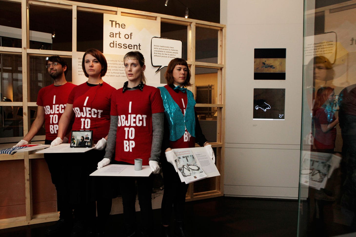 LONDON — On October 27, a little after 2 pm, the British Museum saw a modest, yet affecting, protest in its exhibition I object: Ian Hislop’s search for dissent. A small group of artists from protest group BP or not BP? began unpacking props and distributing flyers, clad in bright red shirts reading “I OBJECT TO BP.” Since 2012, the group has been staging eye-catching performances to protest British oil giant BP’s sponsorship of major UK cultural institutions, including the Royal Shakespeare Company. This Saturday, their aim was to challenge the British Museum’s continuing partnership with BP, a controversial financial sponsor of the institution.