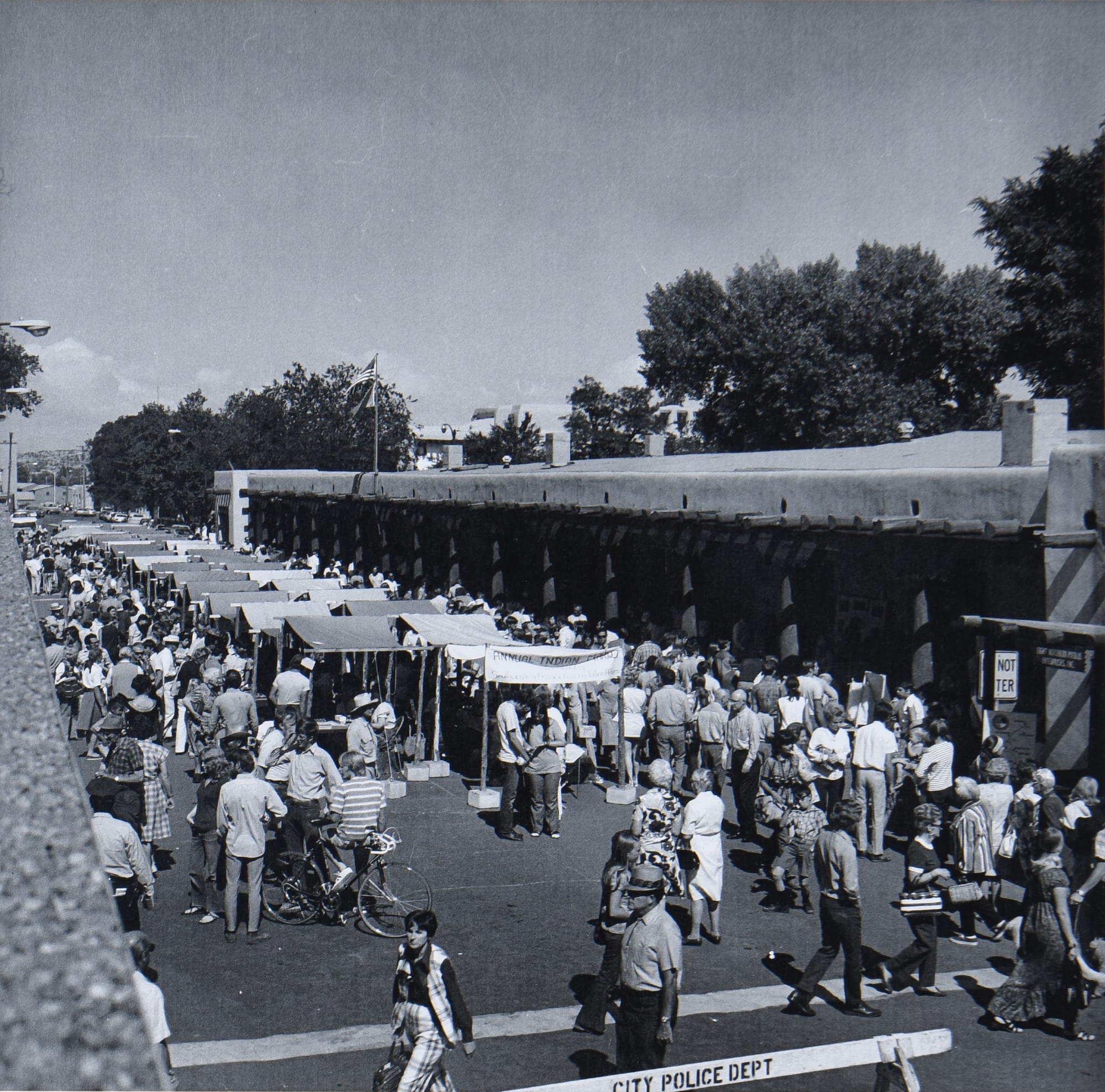 In the 1970s, the market became a predominantly Native American-represented organization, according to Jamie Schulze (Northern Cheyenne), SWAIA director of operations, and has steadily grown. Today, the annual summer event attracts upwards of 150,000 visitors, who can talk with and purchase work from Native artists throughout approximately 17 city blocks in and around the historic Santa Fe Plaza.