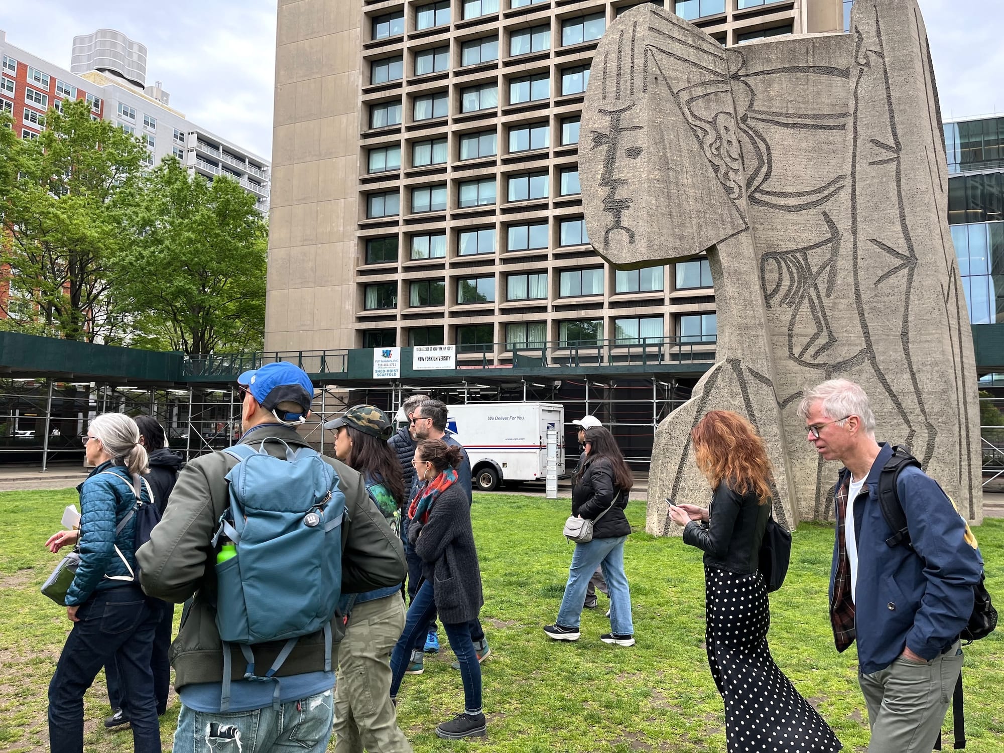 Pagano’s “Brutal New York” guided tour was part of Jane’s Walks, an annual global festival held in 28 countries on the first weekend in May in honor of urban activist Jane Jacobs. New York is home to its largest chapter, which has been run by the Municipal Art Society of New York (MASNYC) for the past 13 years.