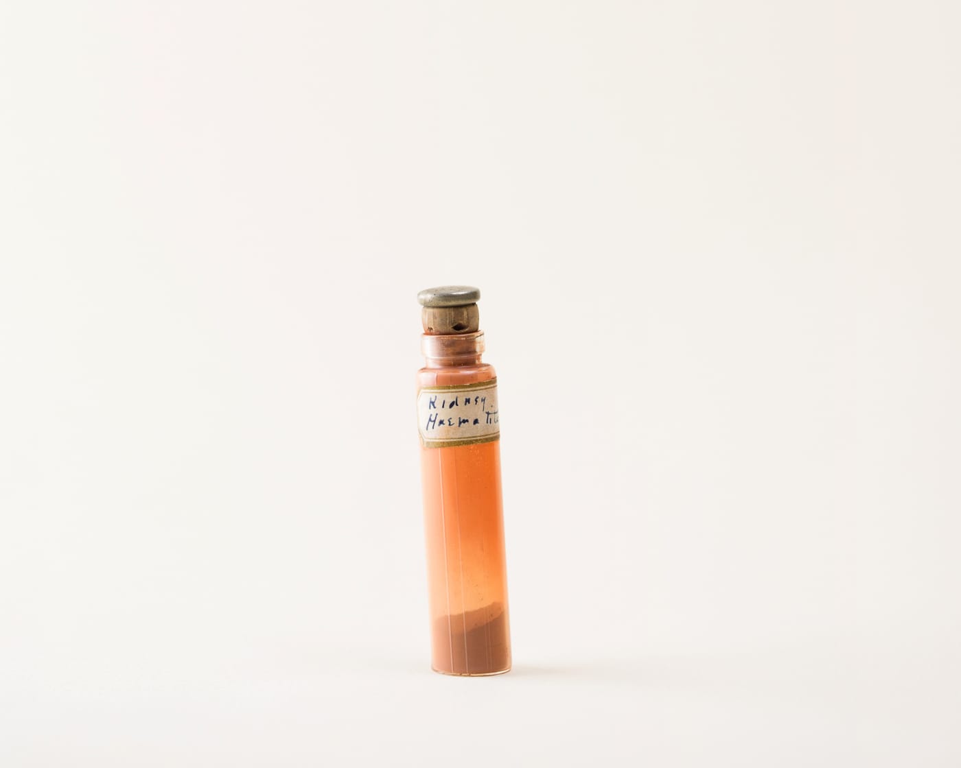 An Atlas of Rare & Familiar Colour features photographs of over 200 colorants, accompanied by texts that chronicle their backstories as well as the history of the collection. They are captured individually by Pascale Georgiev as if they were lab specimens, neatly centered against a plain white backdrop. Like biological specimens, they have been preserved in glass, coaxed into cork bottles, medical bottles, and test tubes. And, just as bits of tissue can help scientists identify plants and animals, these pigments were — and still are — used as reliable representatives to distinguish hues in the wild.