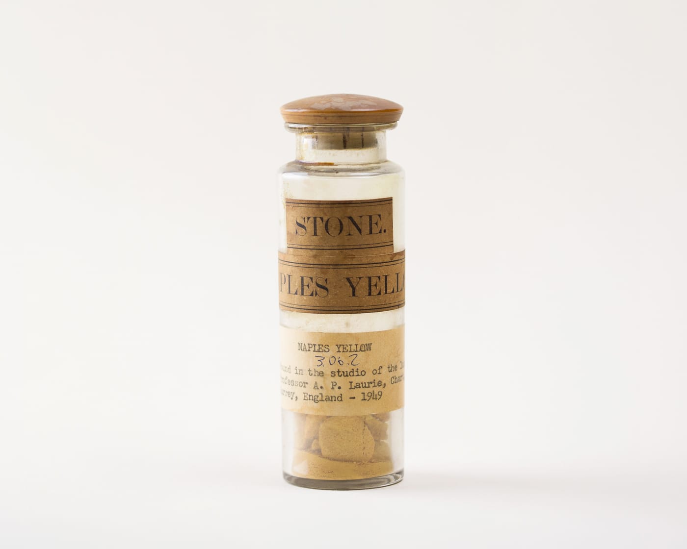 The Forbes Pigment Collection is particularly valuable for its preservation of such pigments that are no longer commercially available. Indian yellow is another example, originally produced in rural India from the urine of cows made to eat only mangoes. The sample at the Straus Center represents the yellow in its raw form: a rough ball that looks like a chunk of foam, or a shapely medicinal moon rock.