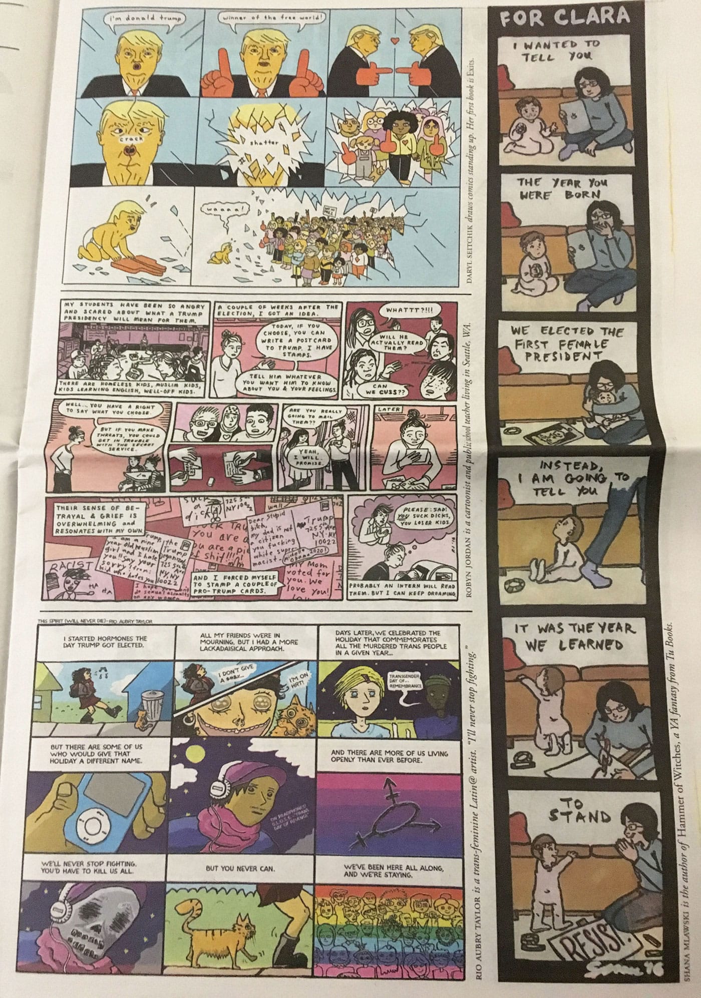 Dedicated mostly to female voices, the comics newspaper RESIST! was distributed for free at marches across the US on January 21.