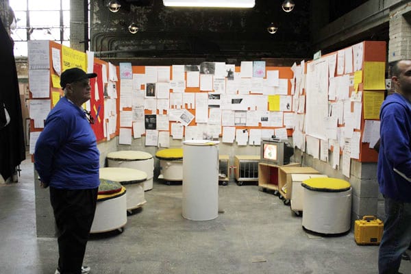 CW: We made “How Much Is Our Work Worth To Each Other?” to encourage action-oriented discussion about value and mutual aid in the arts. Flyers with “HAVES” and “NEEDS” were hung on a giant community notice board. This notice board served as both an analog version of the “HAVES” and “NEEDS” listed online at OurGoods.org, as well as a gathering place for personal messages and informal exchanges. Each weekend during the run of the exhibition, OurGoods hosted workshops about barter, value, cooperation and the solidarity economy.