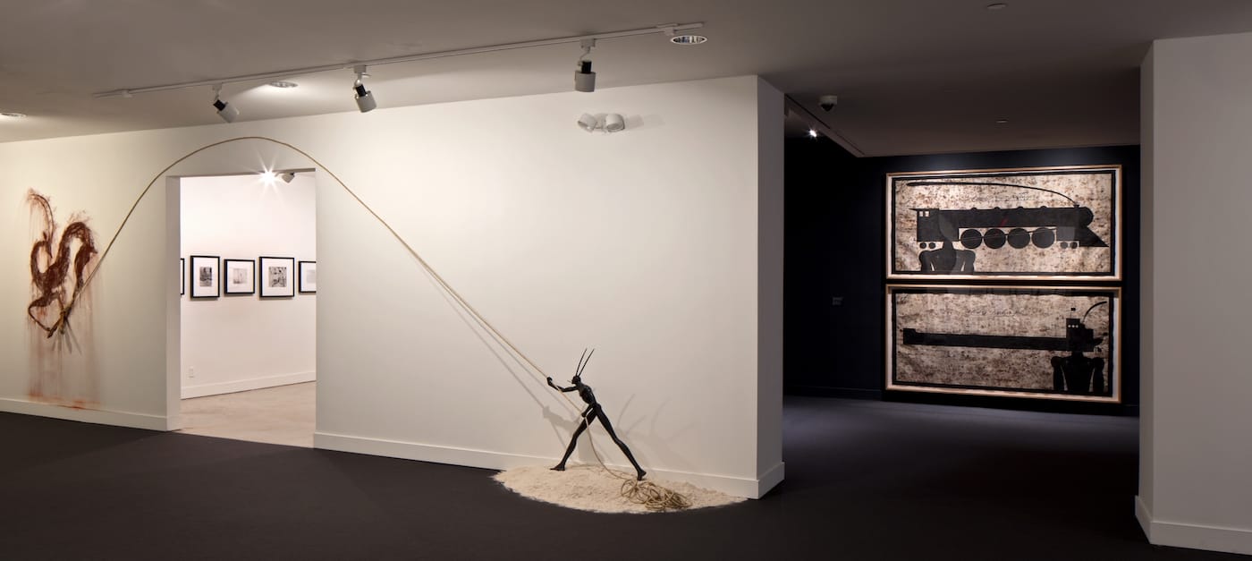 There is something distinctly human — even humanitarian — in the mythos of Ogun, an orisha of work and workers and earthly materials. Coincidentally, many African slaves were brought to Cuba specifically to work as blacksmiths, building a railroad system. Ogun might have been their orisha, watching over them. He features prominently in José Bedia Fieldwork: Selections from the de la Cruz Collection and the Artist, an exhibition now on view at the NSU Art Museum Fort Lauderdale. Fieldwork showcases the unique space Bedia occupies: the Cuban artist is, concurrently and synergistically, artist and anthropologist, spiritual cosmologist and religious practitioner.