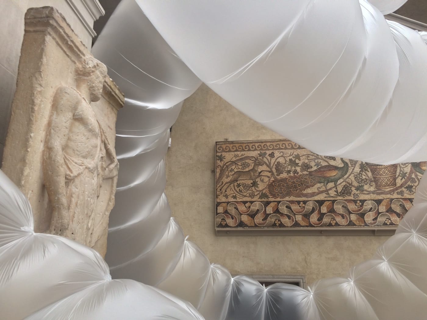 Last month, Shih Chieh Huang unleashed a plastic monster at the Worcester Art Museum: a monumental installation that slithered alongside the Roman floor mosaic in the Renaissance Court and gobbled up children near the rear entrance.