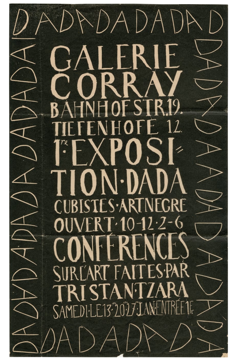 “I am against systems, the most acceptable system is on principle to have none,” wrote Tzara in the first Dada manifesto published in 1918. “Married to logic, art would live in incest, swallowing, engulfing its own tail, still part of its own body, fornicating within itself, and passion would become a nightmare tarred with protestantism, a monument, a heap of ponderous grey entrails.”