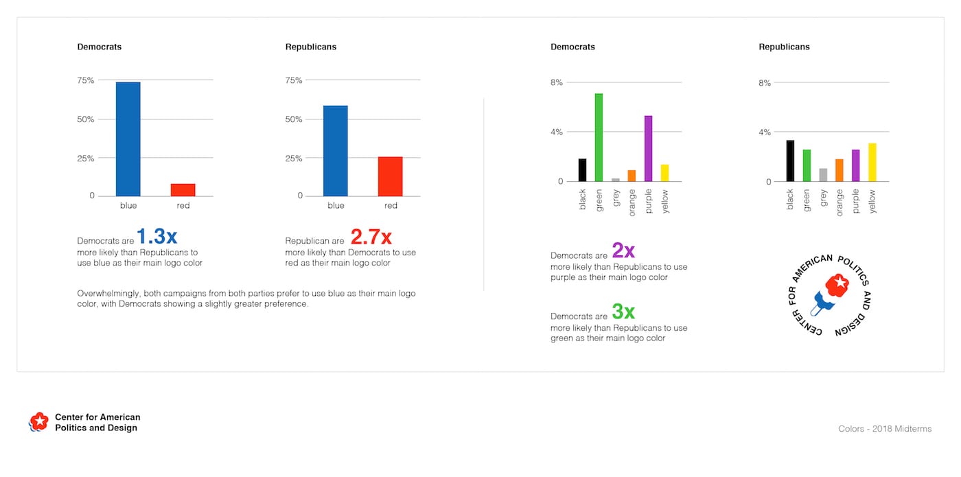 Then again, it sort of is. It’s certainly thorough. Select “letterform” and see how popular it is to replace a letter with a series of lines, or smooth, comforting waves, requiring just a little bit of pareidolia to complete the word. Nine candidates use birds in their logo, which is a category separate from “eagle” (that increases the number of winged-creature icons to 13). Compared to the simplicity of incumbents, the logos of non-incumbents seem more picturesque when you scroll through them quickly — like tiny landscapes. Republicans definitely prefer to use red over blue. Republicans also do not use more serif fonts than Democrats do (why did I think it’d be otherwise?). And only one candidate uses Comic Sans (Ron Curtis, of Hawaii).