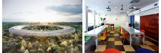 The current exception to the stifling state of contemporary workspace might be the offices of start-up technology giants like Apple, Google, Twitter, and Facebook. These companies have innovated hugely on the traditional office design, emphasizing wide-open spaces, flexible and functional organizational systems, and social interaction. Google even has an outdoor cafeteria — but still, none of Olivares’s desks.