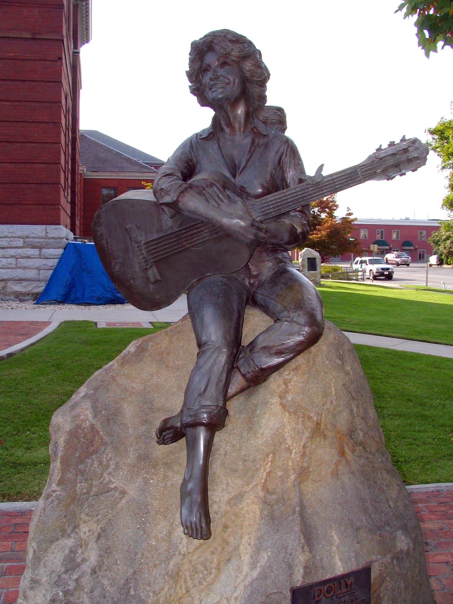 A bronze of Parton already exists in Sevierville, Tennessee on the lawn of the Sevier County Courthouse. The sculpture, made by artist Jim Gray, depicts a young Parton sitting on a rock with her guitar.