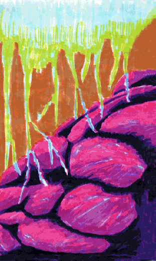 “Boost Presume I’m Gonna Breathe Grieved” (2021) is a GIF art commission for an ongoing Emily H. Tremaine Foundation-supported series. In this scrolling mix of McKay’s scanned, hand-drawn, and illustrated animations of trees and rivers alongside Mills’s knocked-out digital scribbles of smoke and forest fires, a much-needed acknowledgment of pandemic grief and isolation emerges. (Just make sure to hit that “Click Me! Please! Please!” button for the accompanying maudlin, 1970s AM radio soundtrack.)