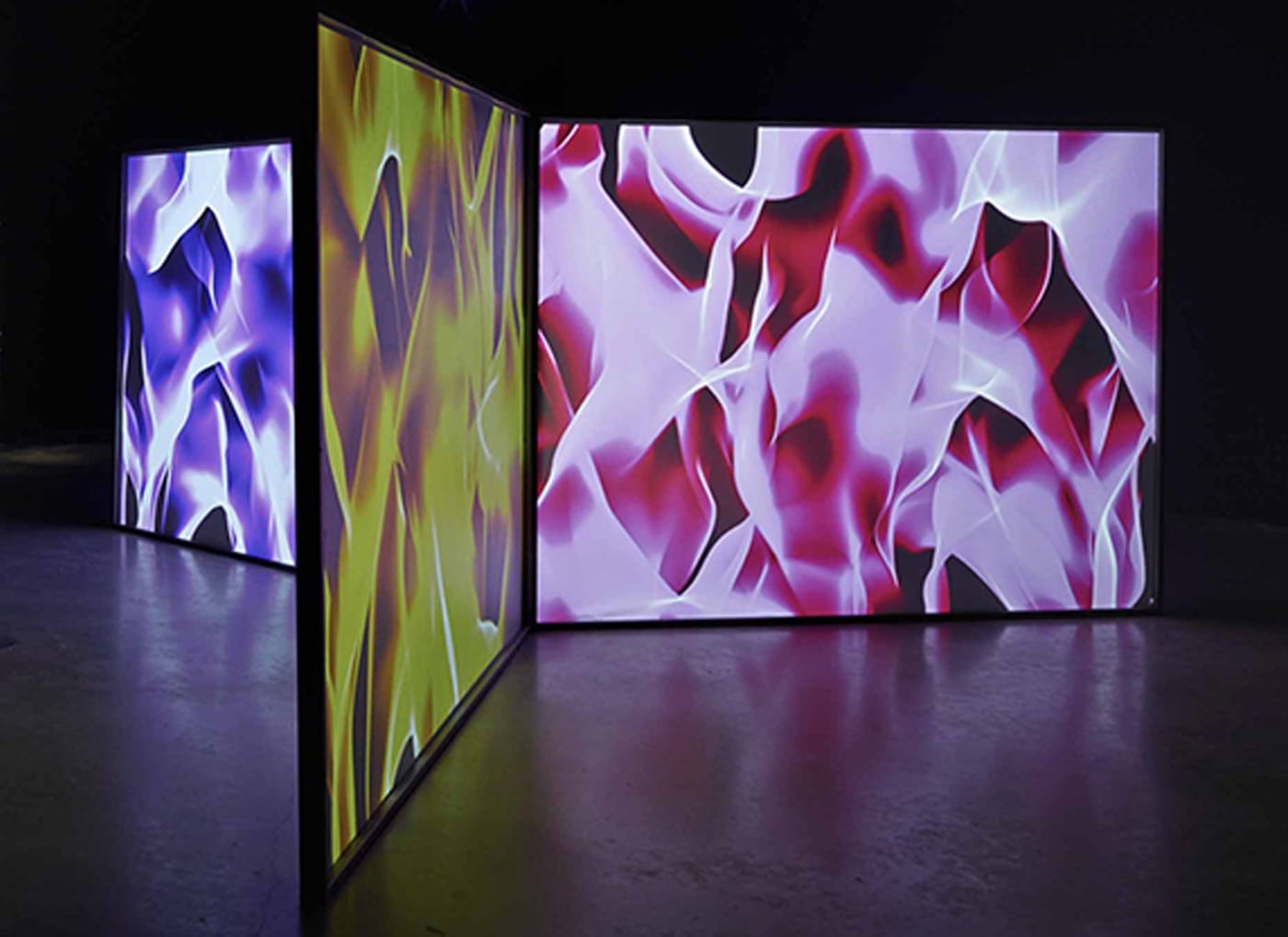 But there was some good stuff to be found. My favorite pieces were the somber, abstract neon, sonic installation by street-artist SKKi©, called “The Memory Hole” (2018), Keiichi Tanaami’s joyous “Oh Yoko!” (1973) animation of John Lennon’s 1971 song by the same name, and Florian and Michaël Quistrebert’s digital animation “Void Fires” (2018).