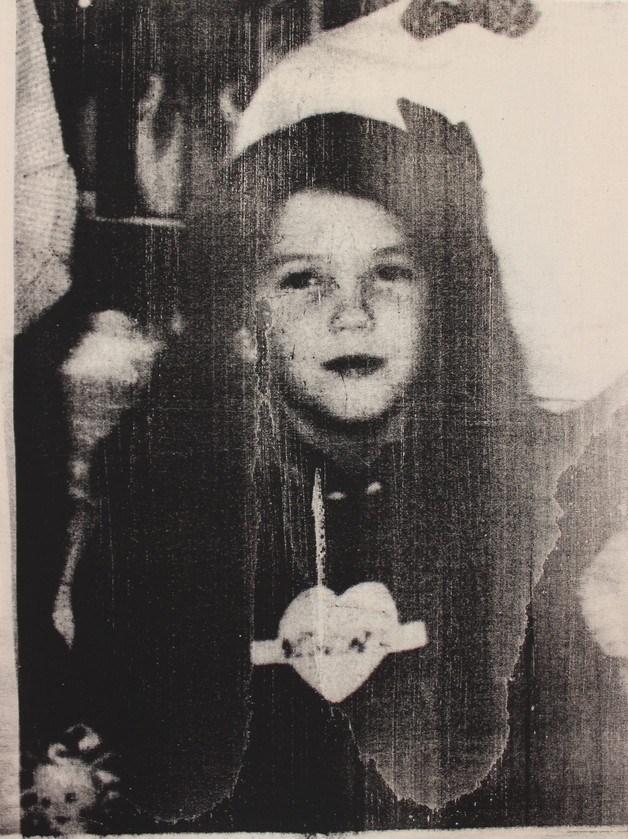 TR Ericsson, “Susie, Christmas, c. 1953,” 2017. Graphite, resin, and funerary ash on muslin, 24 x 18 in. (photo courtesy Albertz Benda)