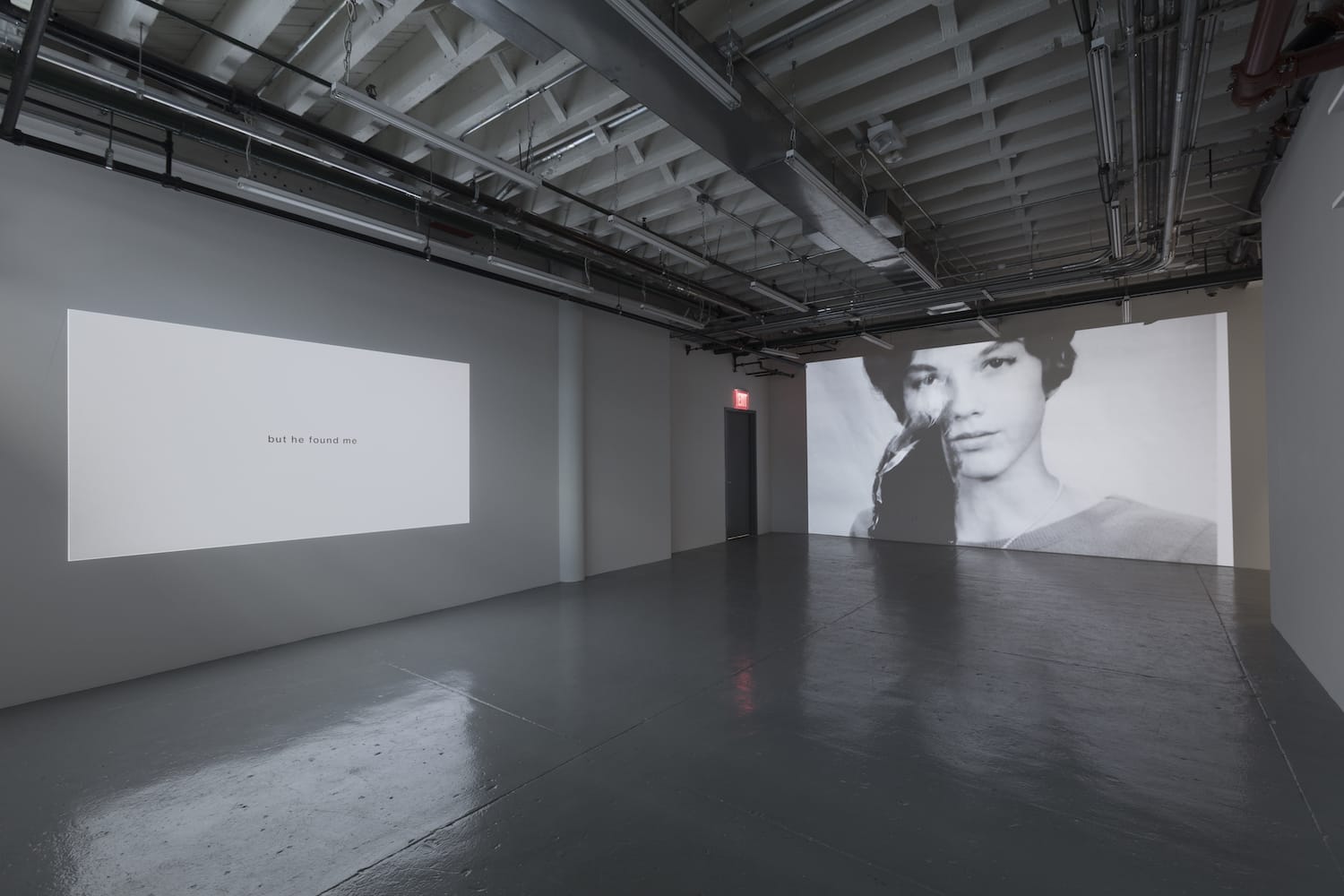Ericsson’s show takes its title from Jacques Derrida’s book of the same name, a collection of philosophical essays about ashes and cinders, death, the Holocaust, and the limits of humanity. The exhibition opens with cinders, encompassed in a dual-projection video on two adjacent walls. On one wall, snippets of text from conversations the artist had with his mother about her father’s abusive tendencies appear in a seemingly random sequence, while on the other, a video of the artist burning copies of family photographs (he wanted to keep the originals) fills the screen.