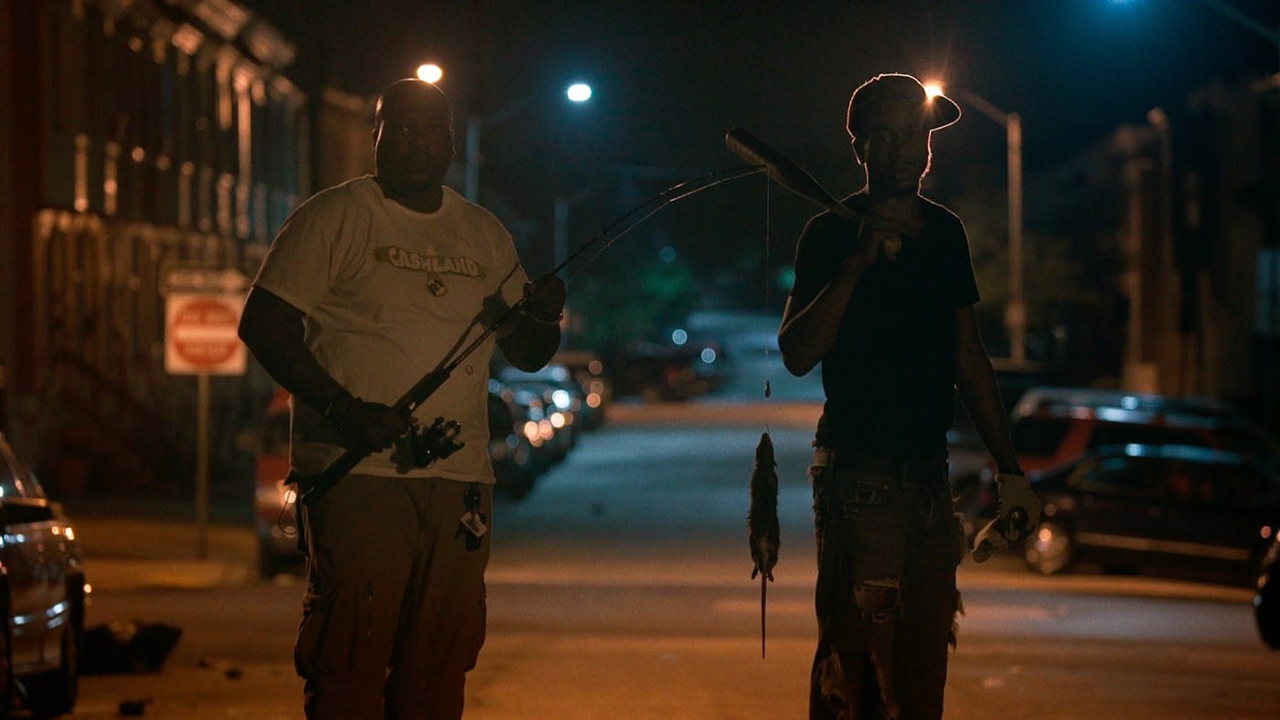 Providing different perspectives to Baltimore’s rat problem, an assortment of people appear before Anthony’s camera: while their friend watches, two weathered men on a bench sing a tune about hating rats (“I wanna hit them with a baseball bat”); a man “hunts” rats with a personal armament of pellet guns; a duo use a fishing rod and a Louisville Slugger; a seasoned exterminator employed by the city dishes out his opinions (“It ain’t never been a rat problem in Baltimore; always been a people problem”) while making a few house calls; a snake handler who uses baby “pinky” rats for food; and a couple of pet owners introduce their rats.