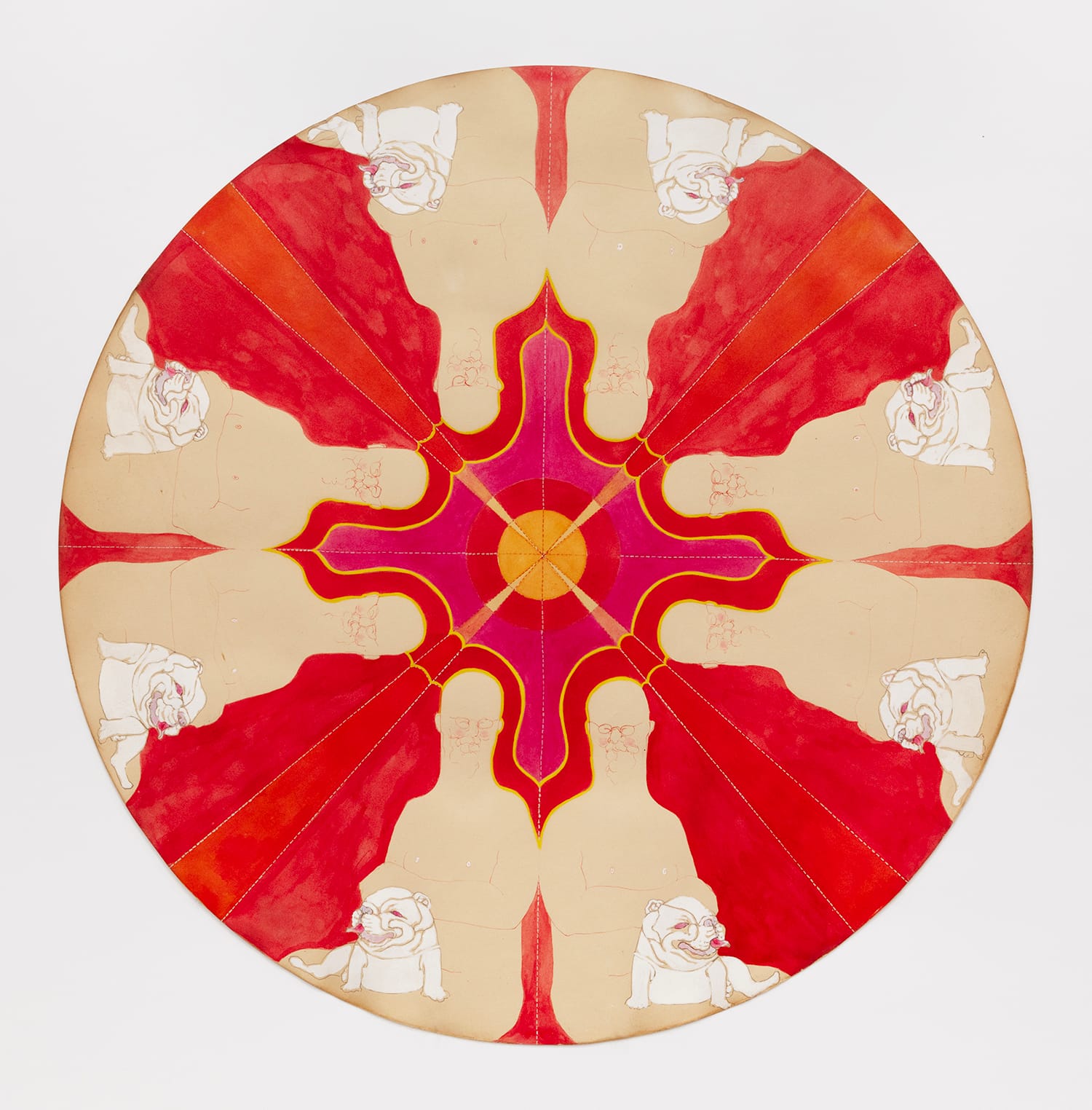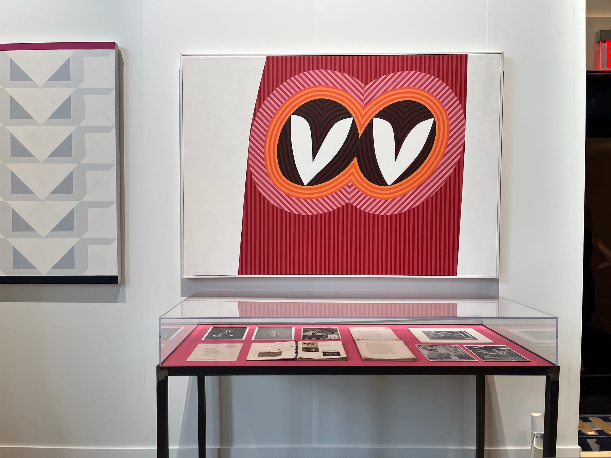 Other mid-century women took the spotlight at Ryan Lee Gallery’s setup. I approached the booth to ask about a pair of tesselated kaleidoscope paintings depicting a man and a panting pug, which undoubtedly shares a few facial features with the human sitter. The works are from May Steven's Big Daddy series and the subject is Steven's father, a controlling and ever-present figure in the two works, even as his image circles away and spins upside down.
