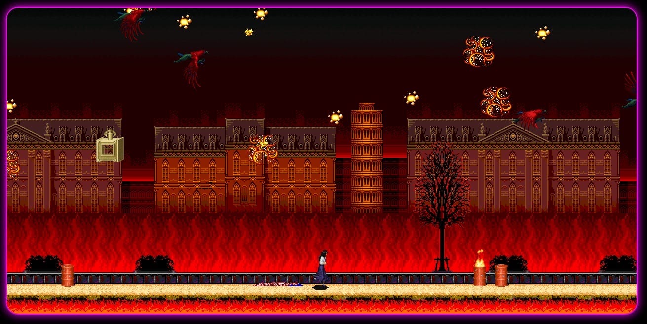 There’s an immediate and deep nostalgia. The colors, the shapes, the creatures — it’s as if I’m back in my old bedroom, playing Sega Genesis, or over at Michael’s house (he had the Super Nintendo). This is all so familiar and yet utterly and enchantingly unfamiliar. There are no jumps to land, no boxes to break, no coins or special items to collect. Just hold down the right directional arrow key, wait, and take in each scene, shimmering with eerie synth music every step of the way. The experience, once I settle into it, is meditative.