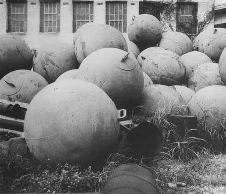 “These steel balls gathered like discarded toys or a broken strand of pearls or abandoned space-travel machines lurk disused and sinister (like something out of the early diChirico) in the Warehouse District in uptown New Orleans; no still life could give an indication of their size—enormous, they are like the toys with which the giants tested the god Thor on his visit at Jottunheim.”